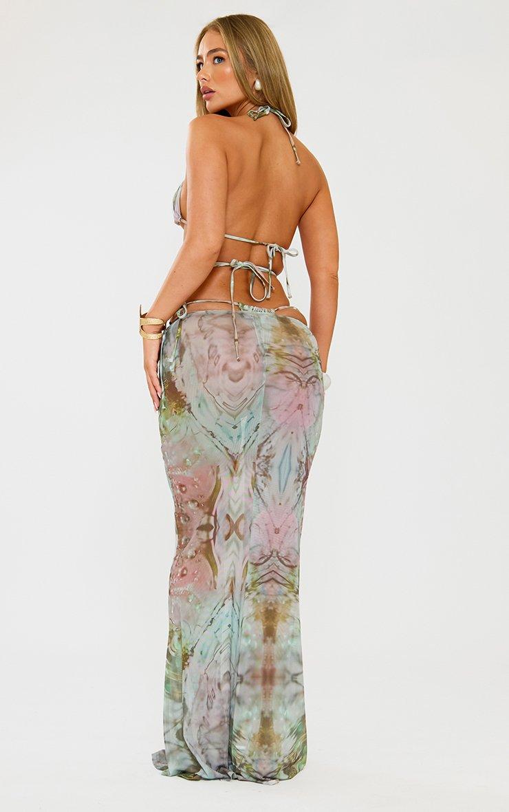 Triangle Bikini And Maxi Skirt 3 Piece Set In Multi Starfish Print