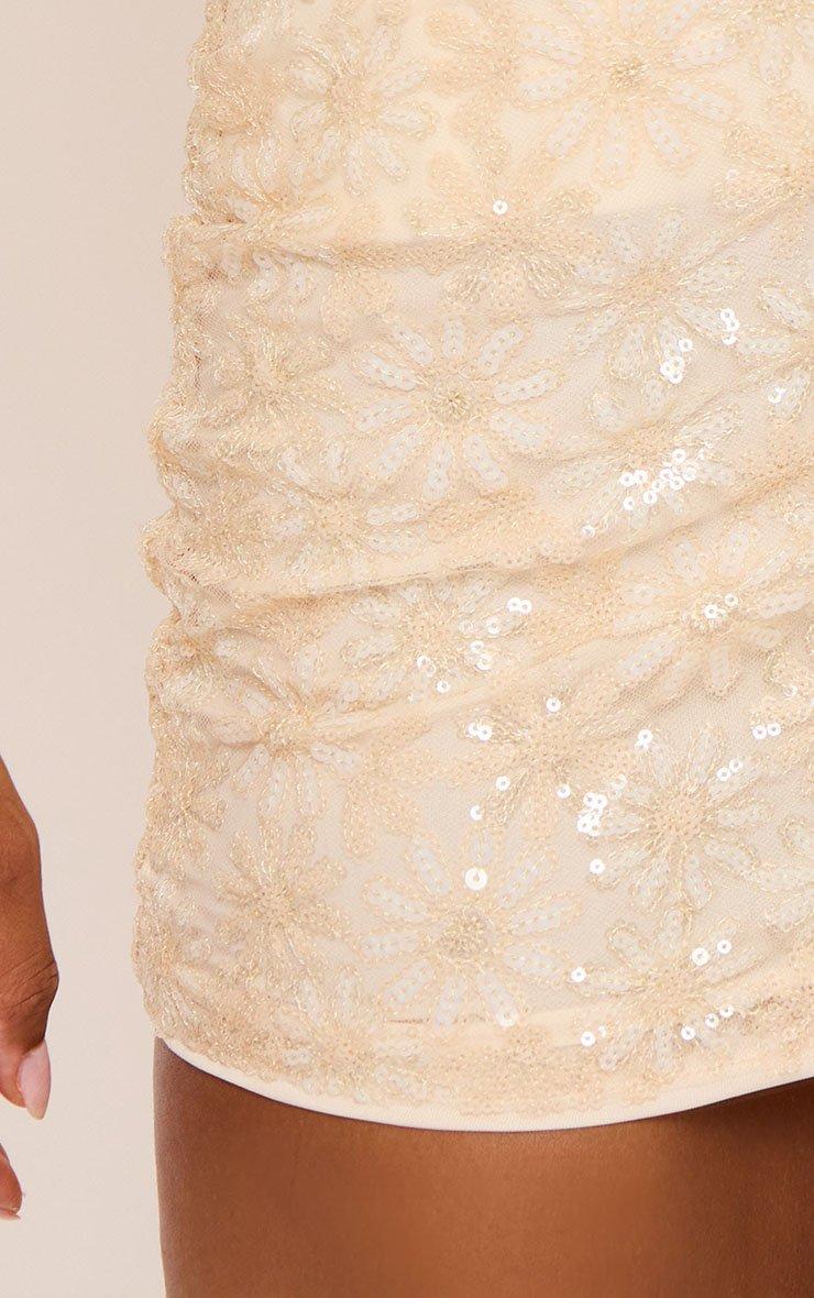 mid rise micro mini skirt in cream floral sequin