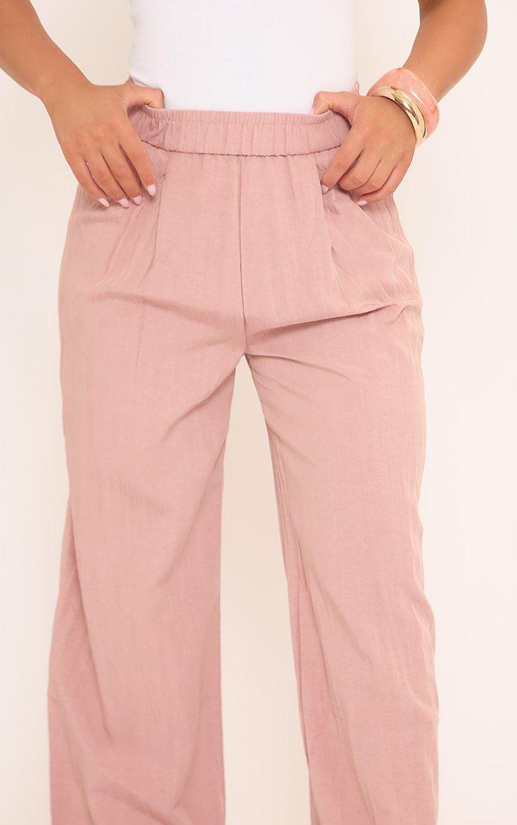 Mid Rise Elasticated Waist Wide Leg Trousers In Pink Linen