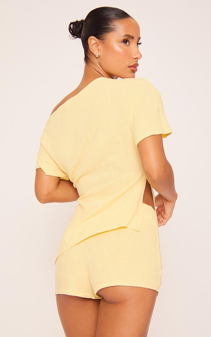 Low Waist Ruched Side Detail Hot Pants In Yellow Texture