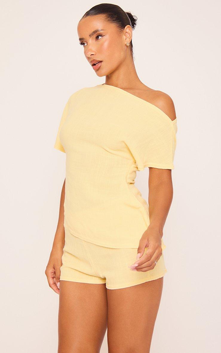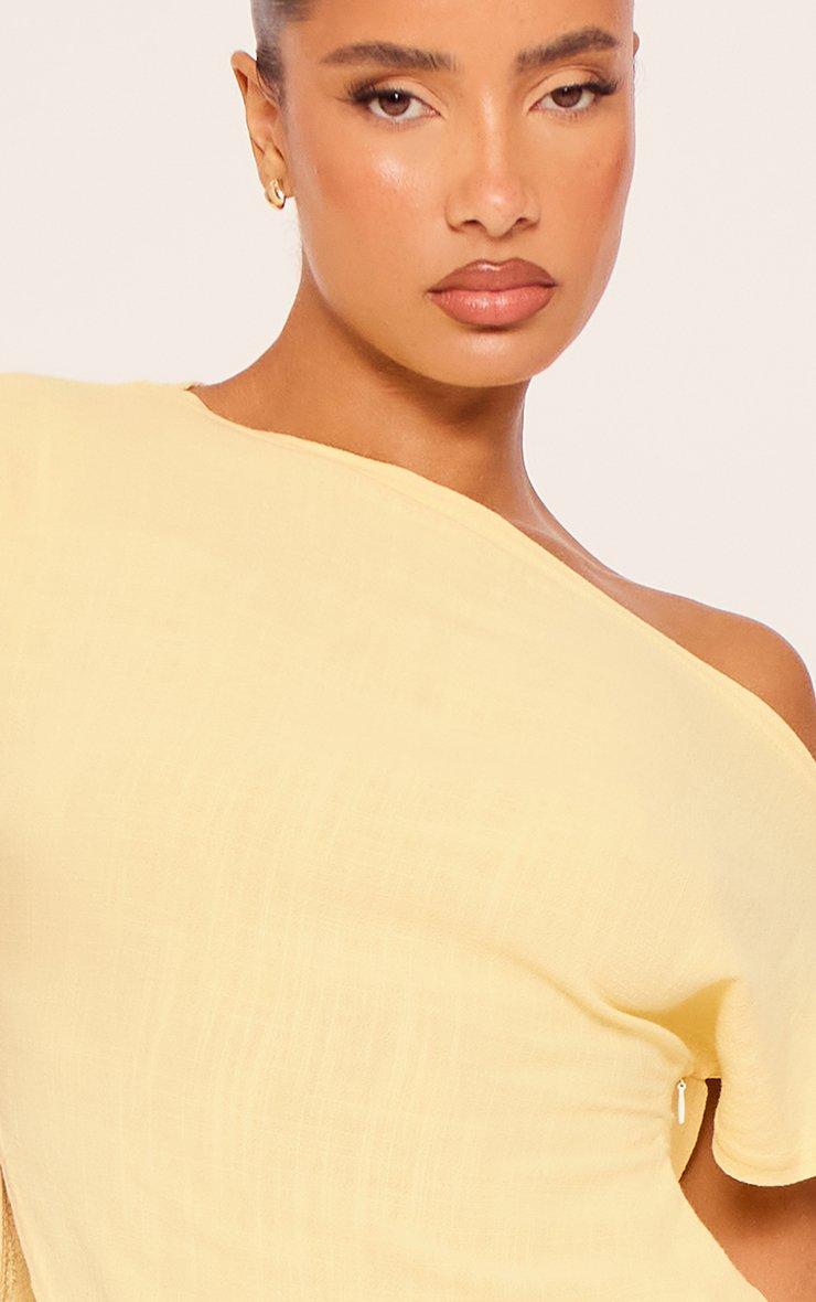 Off The Shoulder Asymmetric Detail Top In Yellow Linen