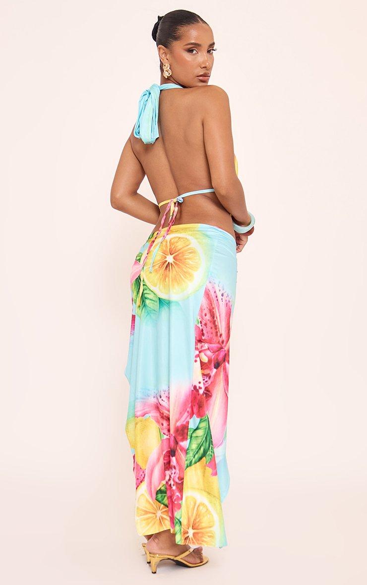 Low Waist Drape Front Detail Maxi Skirt In Multi Print Mesh