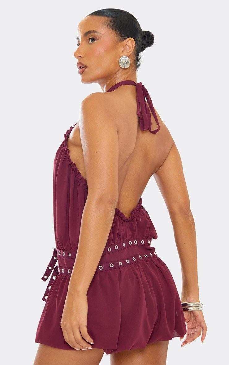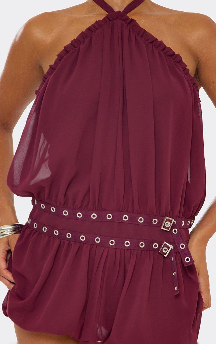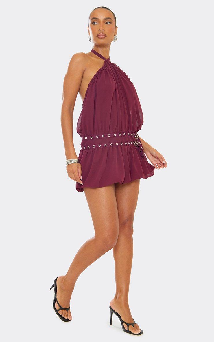 Corset Detail Draped Front Mini Dress In Burgundy