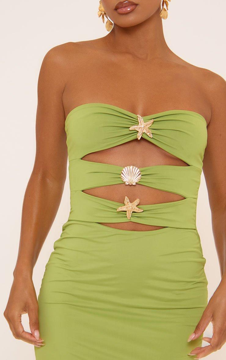 Bandeau Cut Out Multi Trim Detail Maxi Dress In Green
