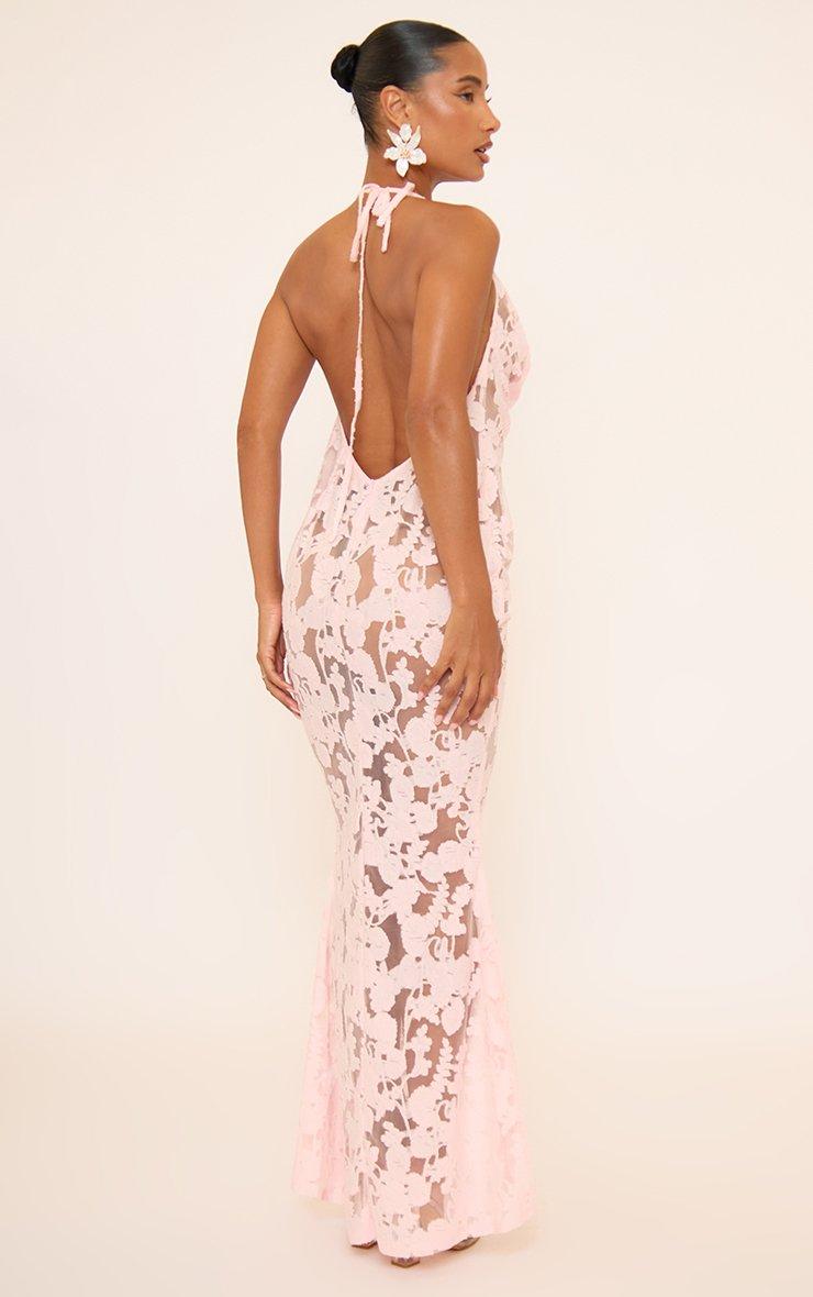 Halterneck Cowl Back Maxi Dress In Pink Floral Print