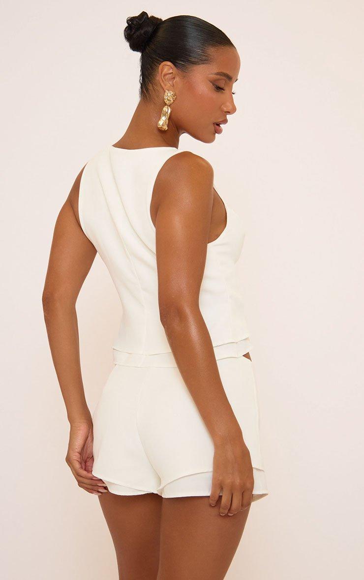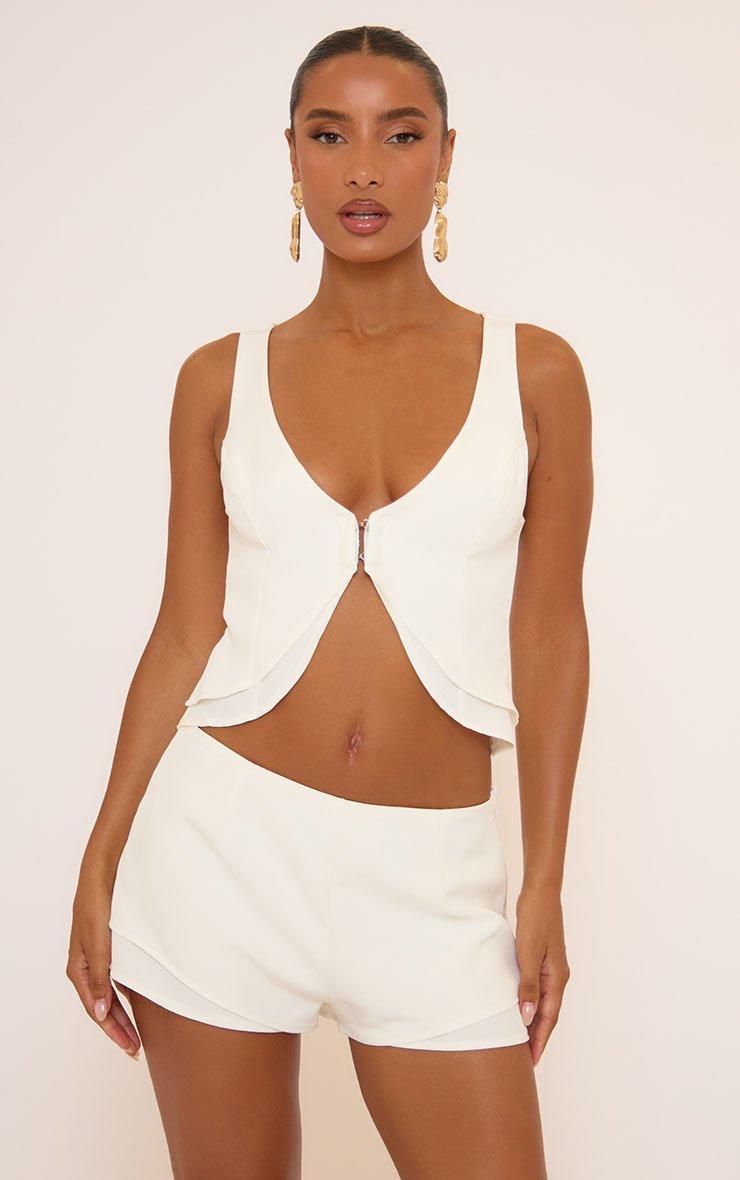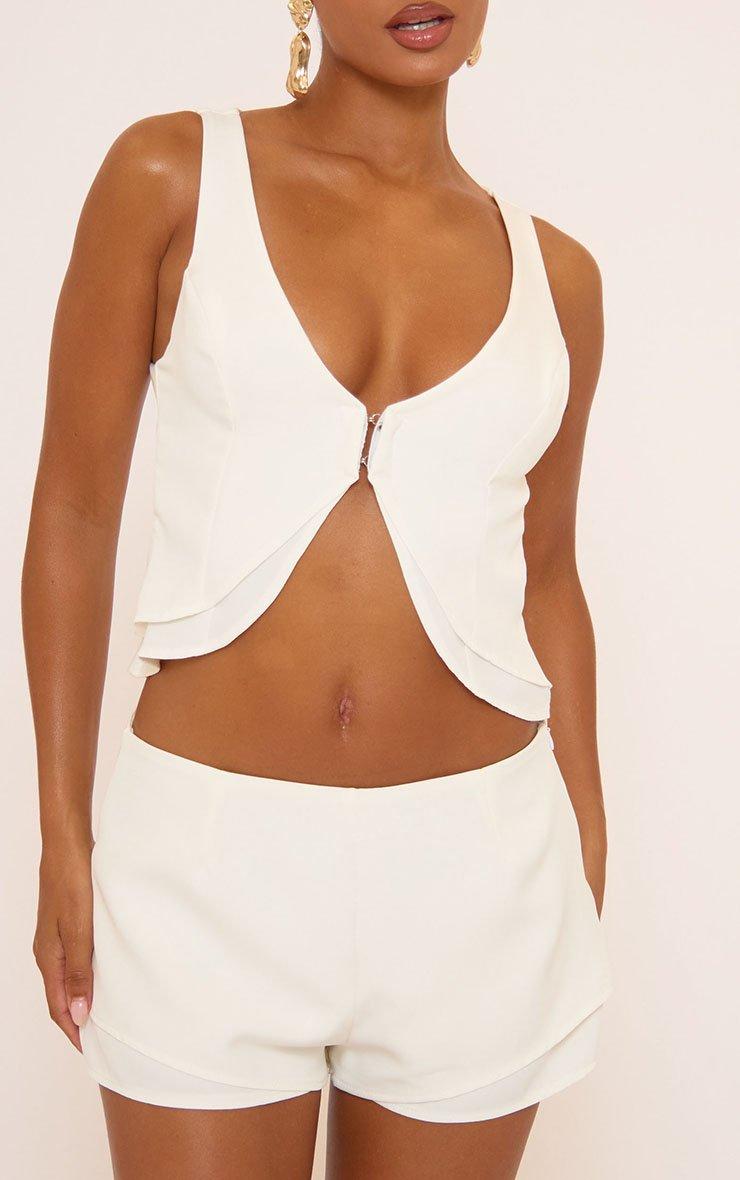 Sleeveless Hook And Eye Double Layer Detail Top In White