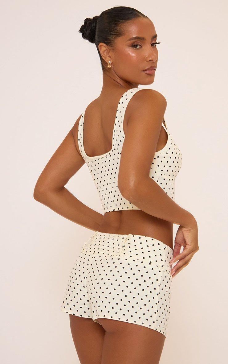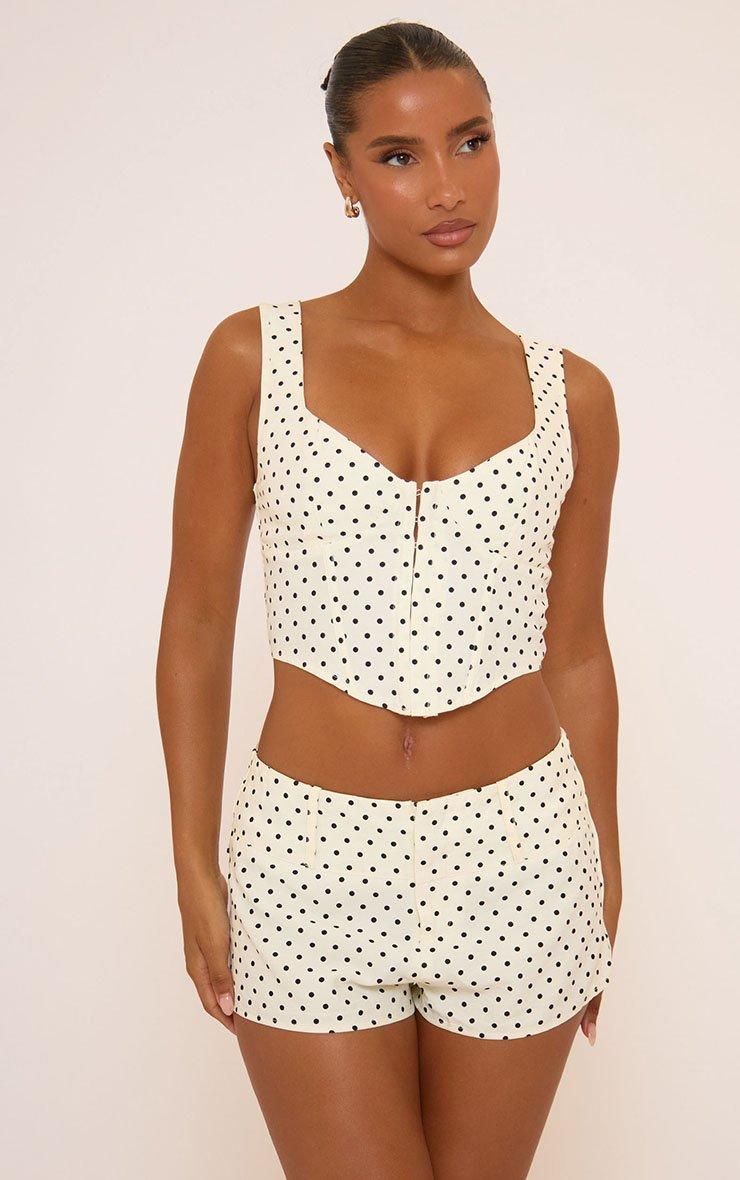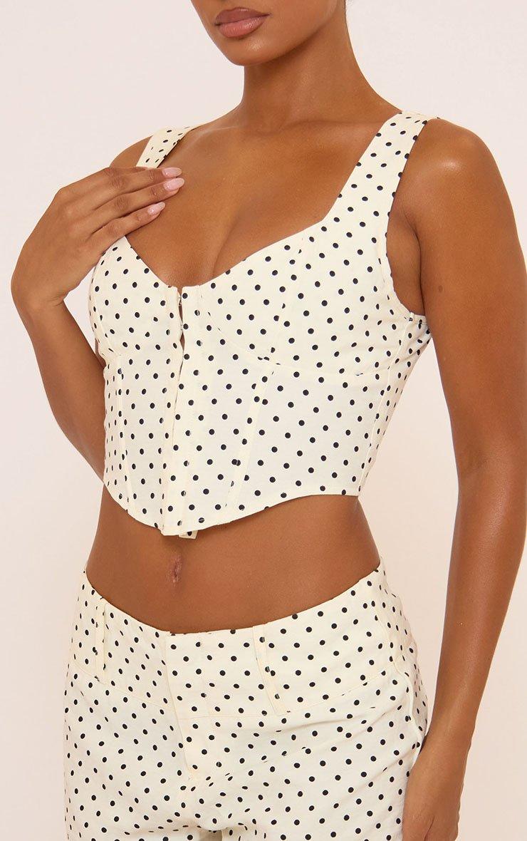 Sweetheart Neck Hook And Eye Detail Top In Cream Polka Dots
