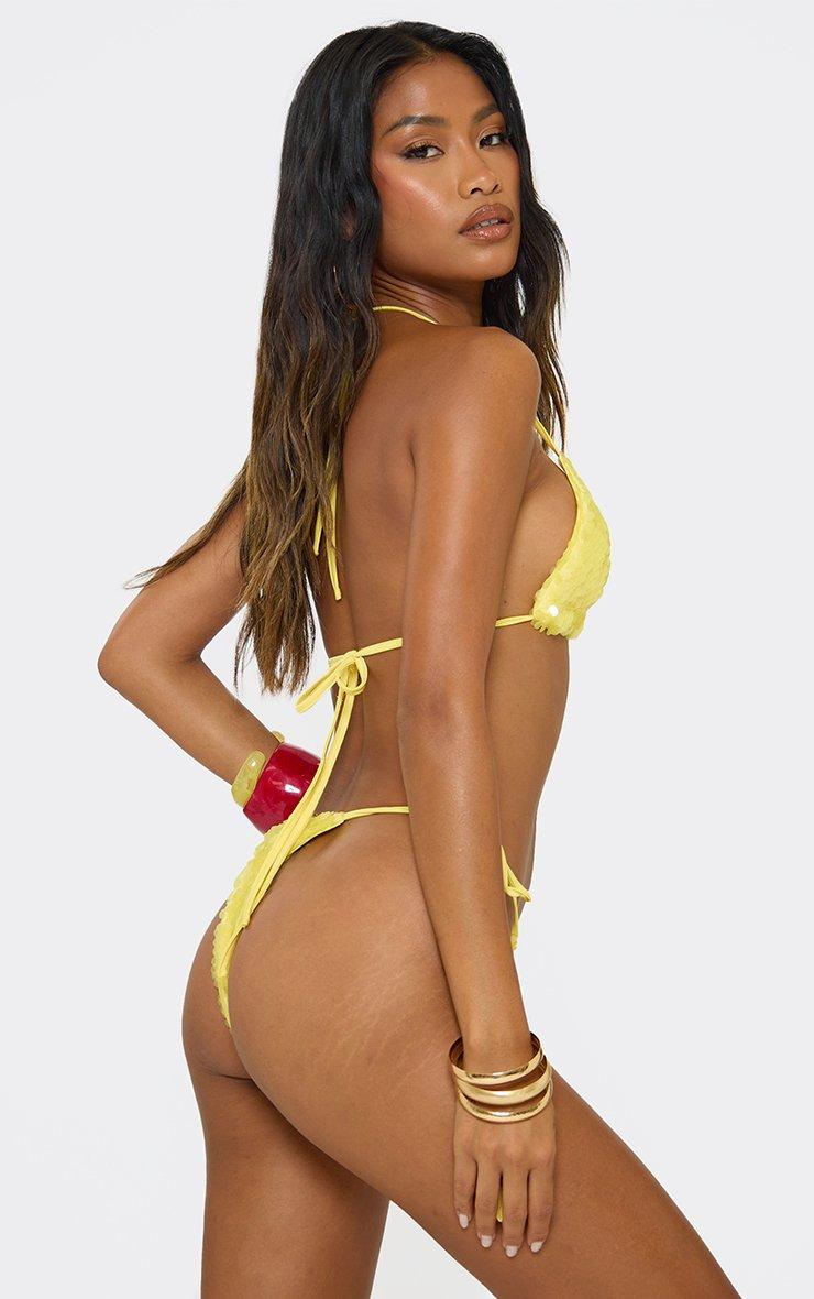 Halterneck Beaded Bikini Top In Green Abstract Print