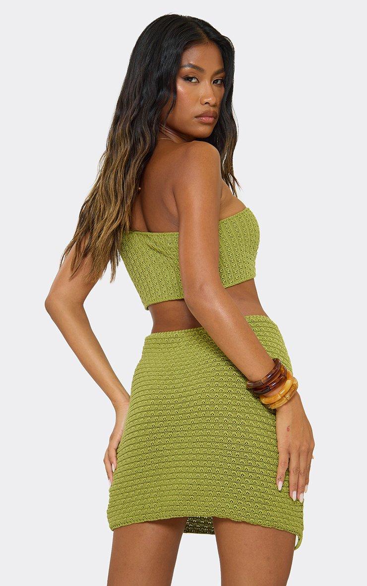 Strappy Tassel Hem Mini Dress In Green Crochet Knit