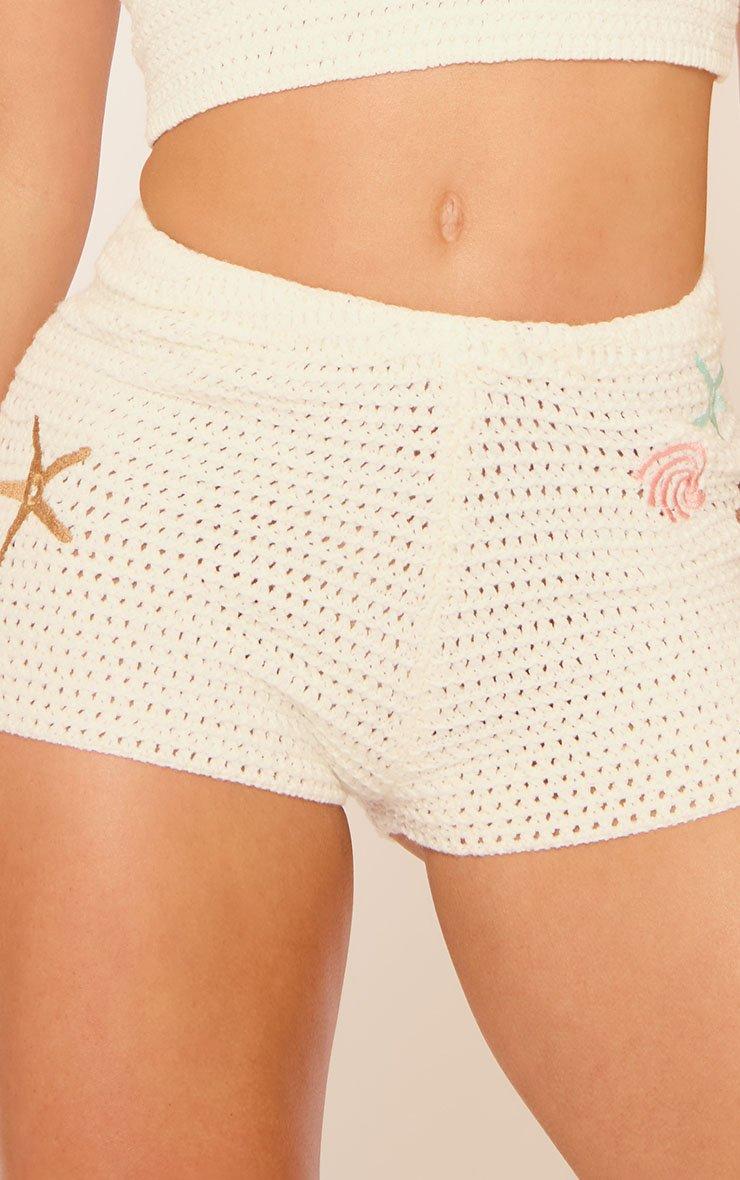 Mid Rise Embroidered Shell Detail In White Crochet Knit