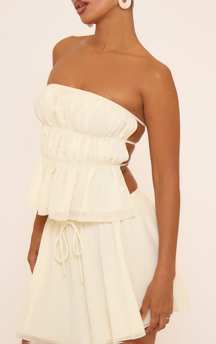 Mid Rise Asymmetric Frill Detail Mini Skirt In Cream