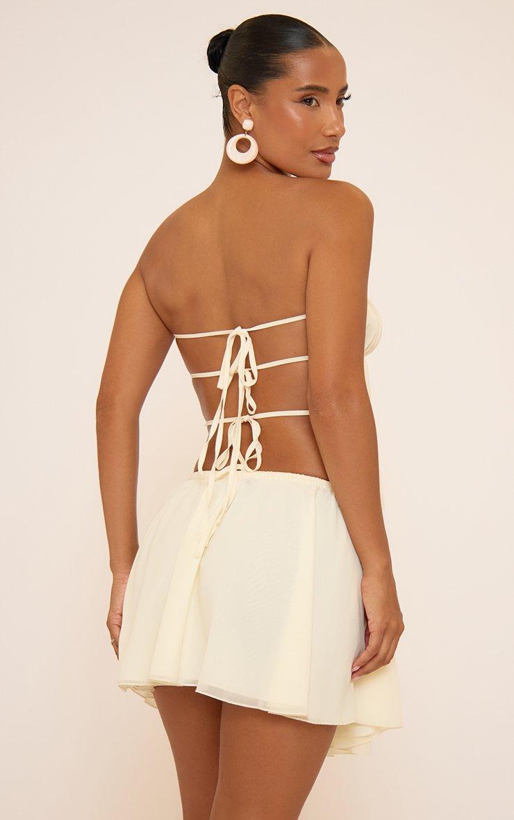 Low Rise Lace Waistband Detail Pleated Mini Skirt In Cream