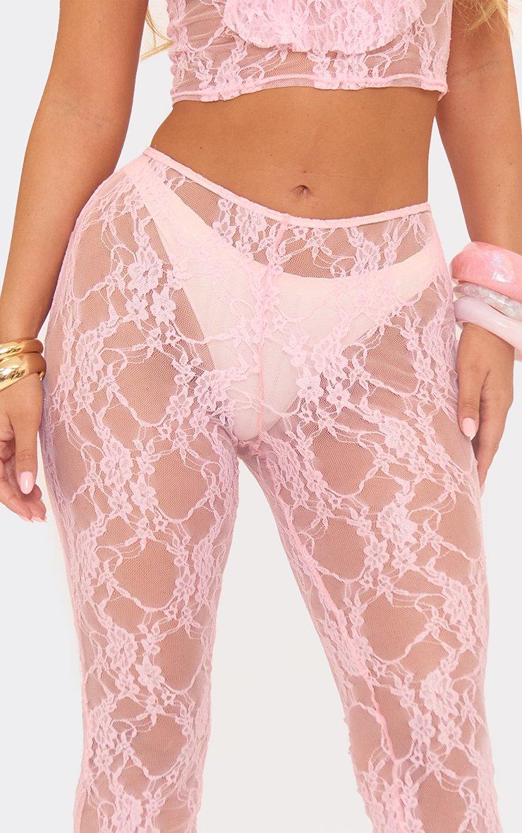 Drawstring Waist Straight Leg Trousers In Pink Ribbed