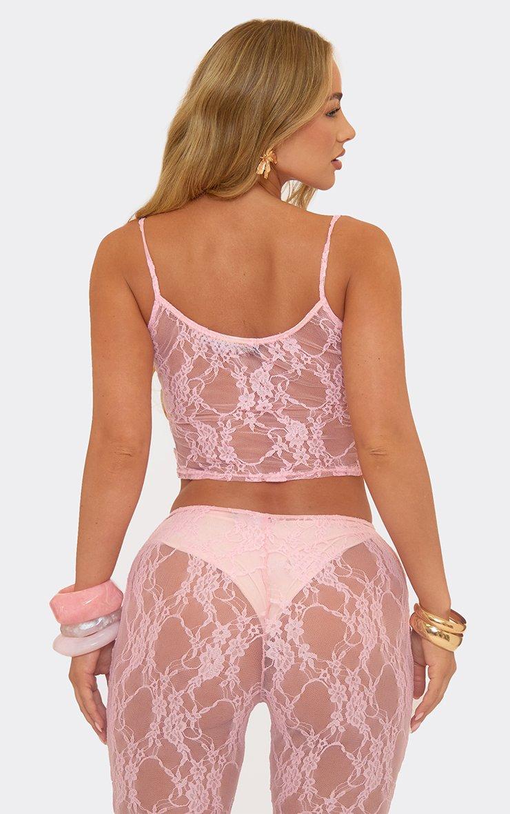 Open Back Sleeveless Crop Top In Pink Lace