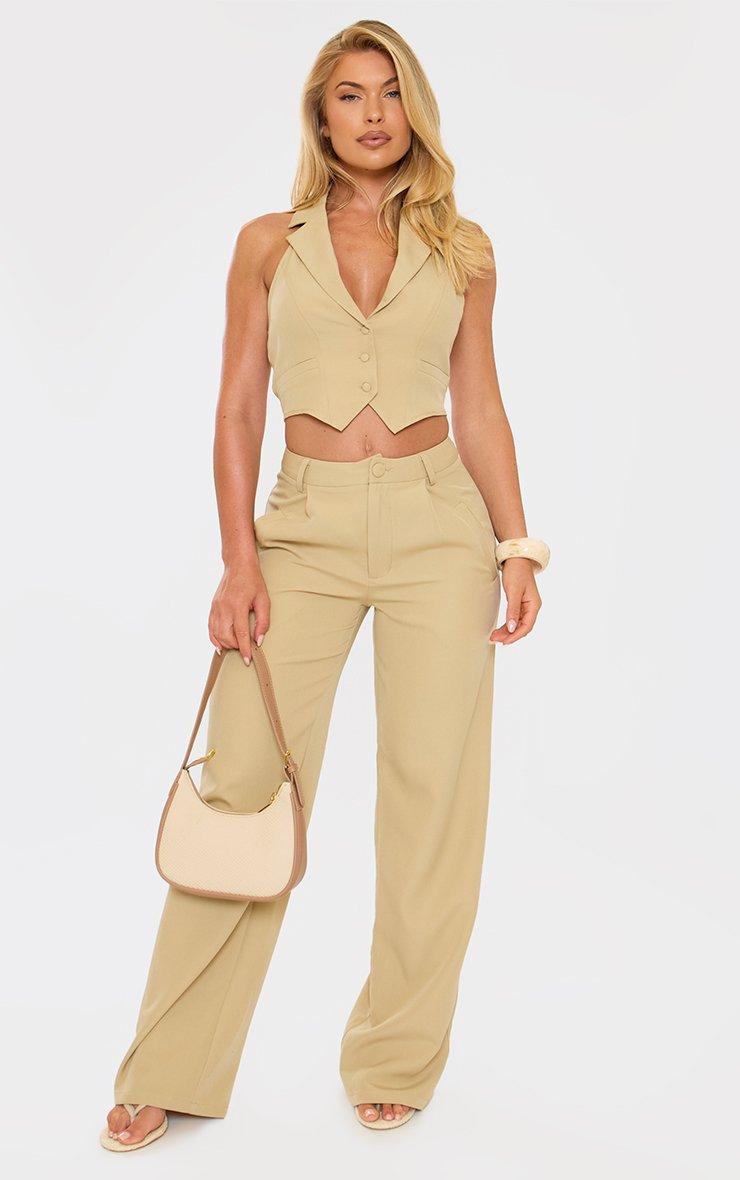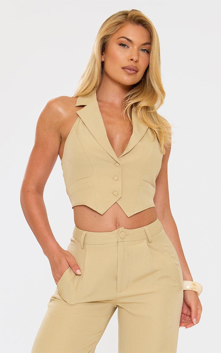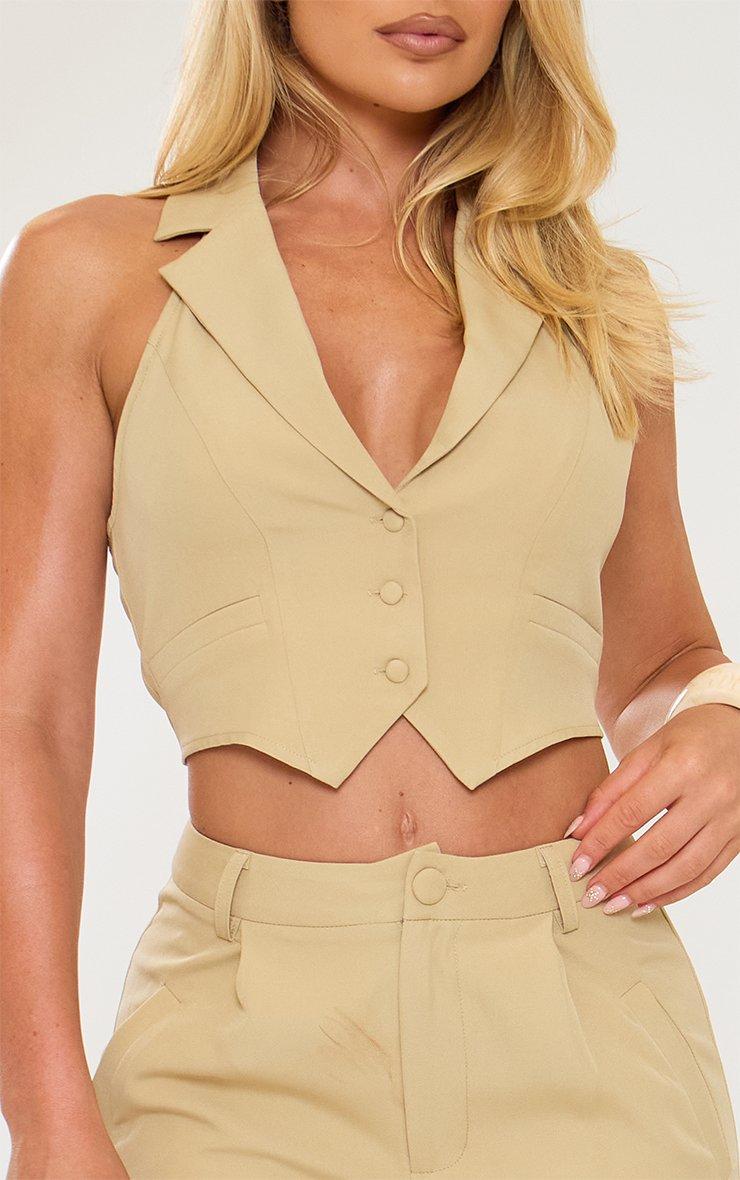 Halterneck Collar Detail Fitted Waistcoat In Green