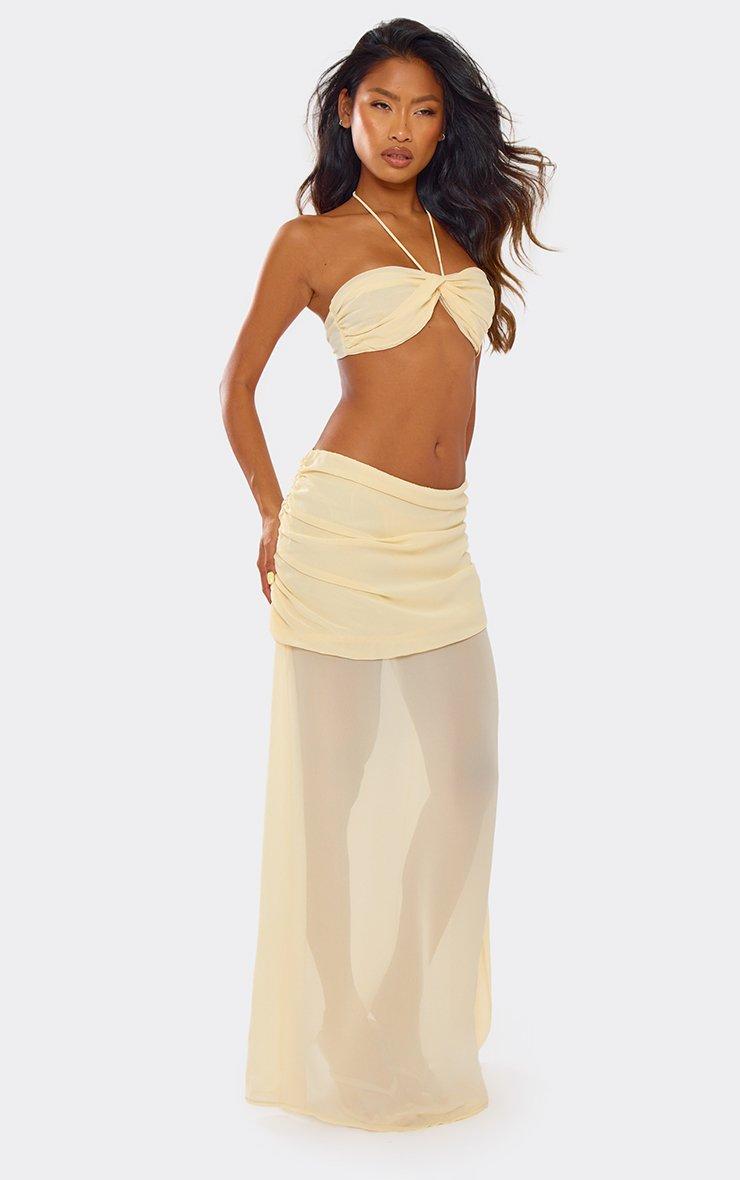 Halterneck Ruched Front Bralet Top In Cream