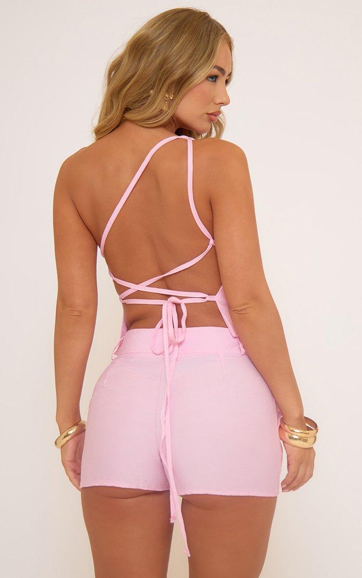 Mid Rise Tailored Detail Hot Pants In Pink