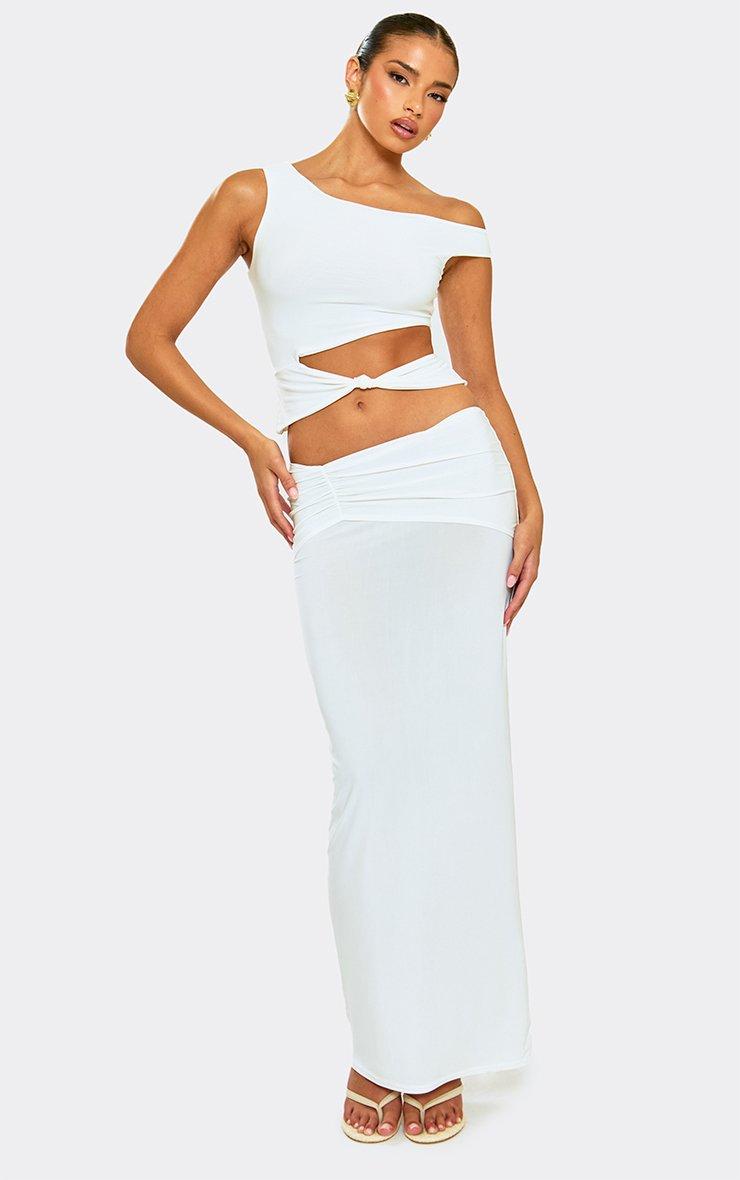 Bandeau Cut Out Detail Curved Hem Fitted Top In White