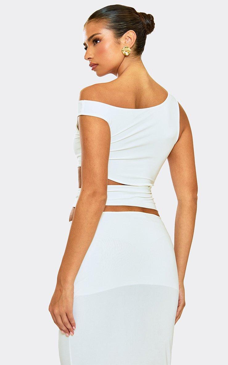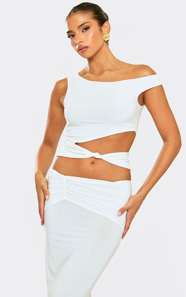 Off The Shoulder Cut Out Knot Detail Top In White