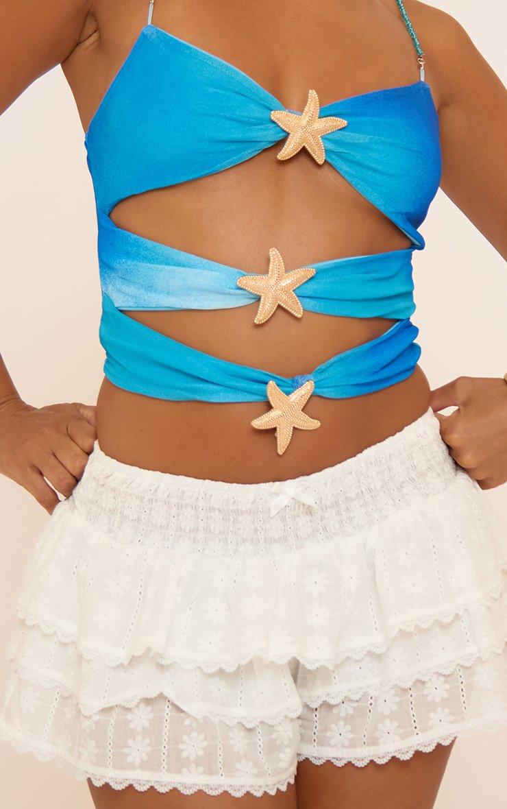 Strappy Star Trim Cut Out Detail Top In Blue Ombre