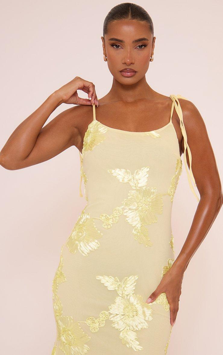 Strappy Tie Shoulder Detail Maxi Dress In Yellow 3D Floral Texture
