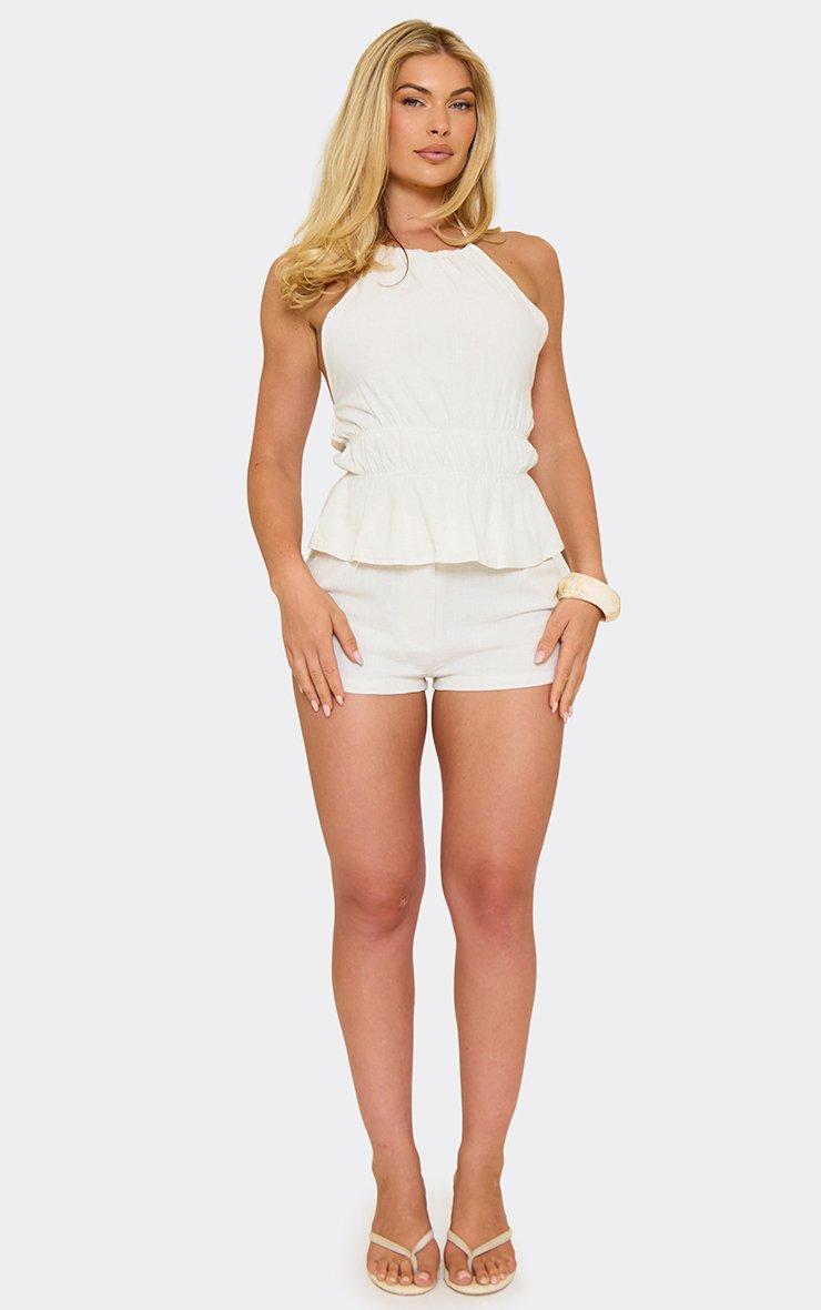 High Waist Premium Embellished Detail Hot Pant Shorts In Silver