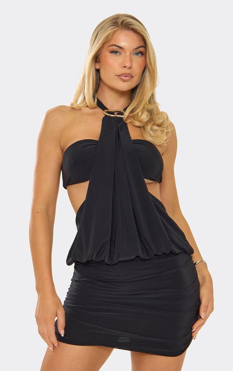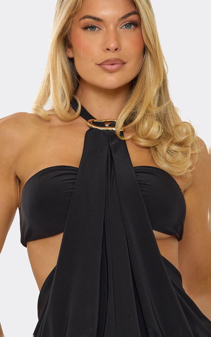 Halterneck Bralet Trim Detail Mini Dress In Black Slinky