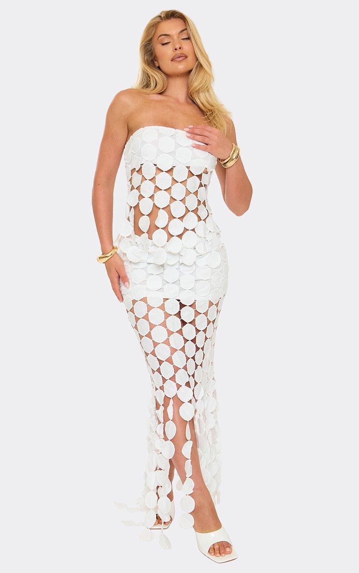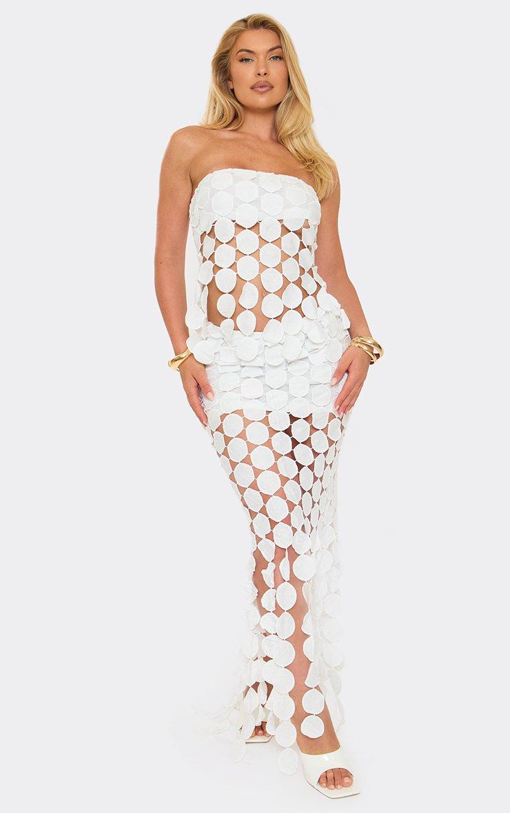 Mid Rise Knot Front Detail Maxi Skirt In White