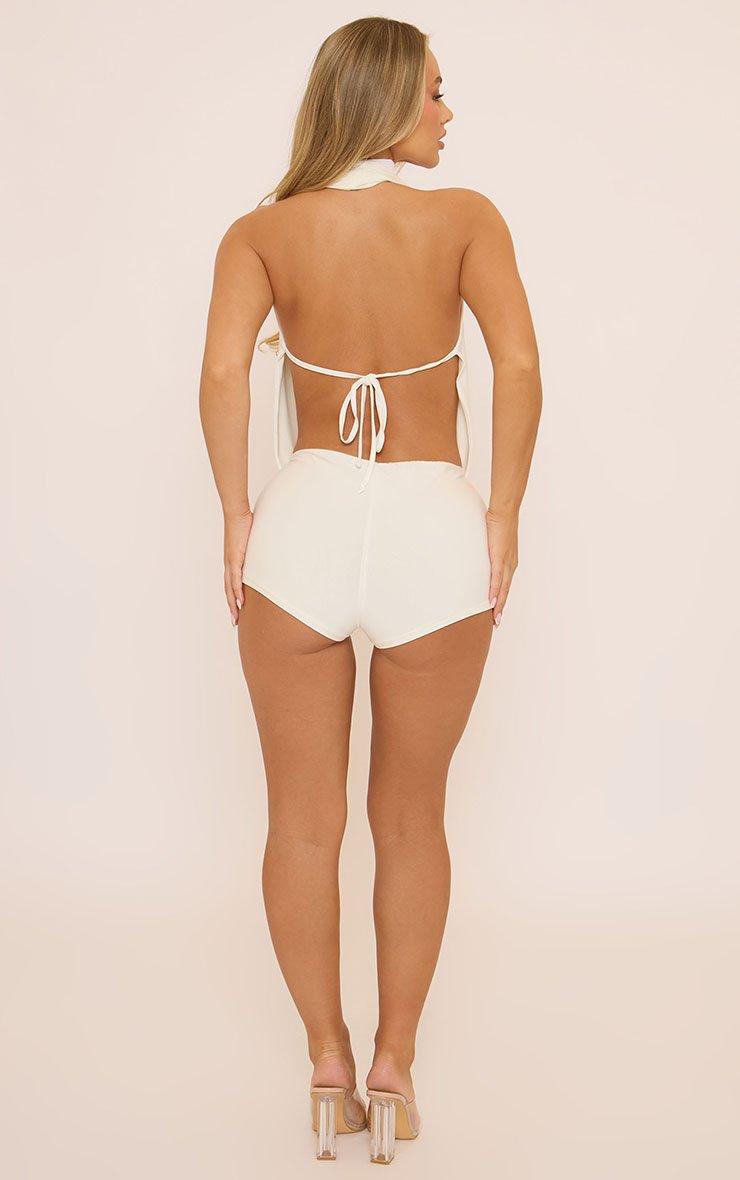 Cowl Halterneck Tie Back Detail Double Layered Top In White