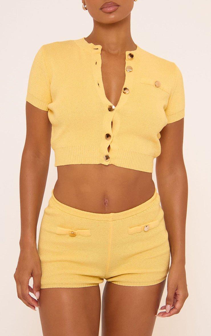 Mid Rise Mini Shorts In Yellow Knit