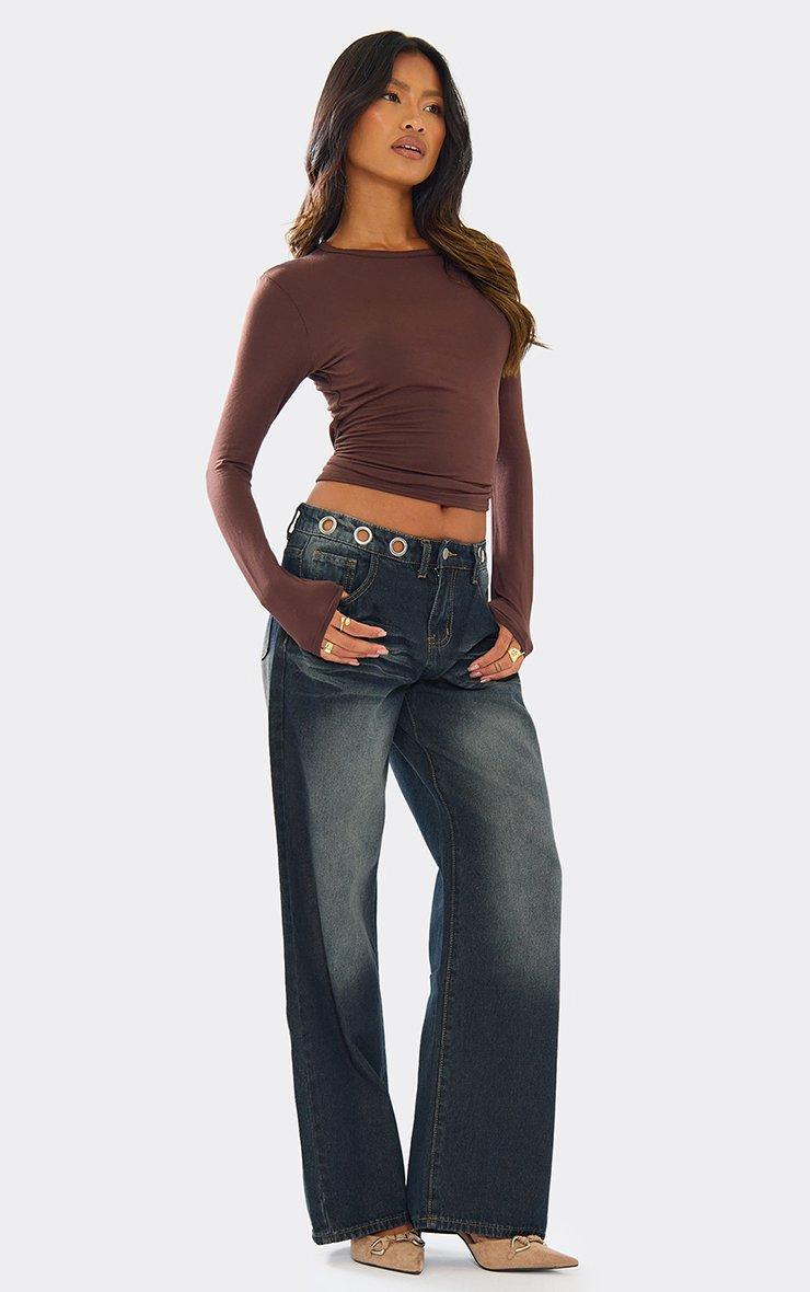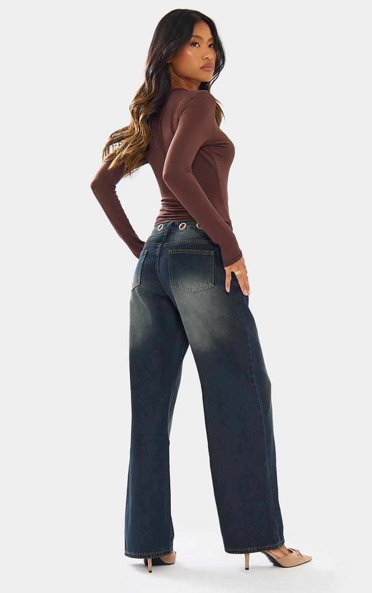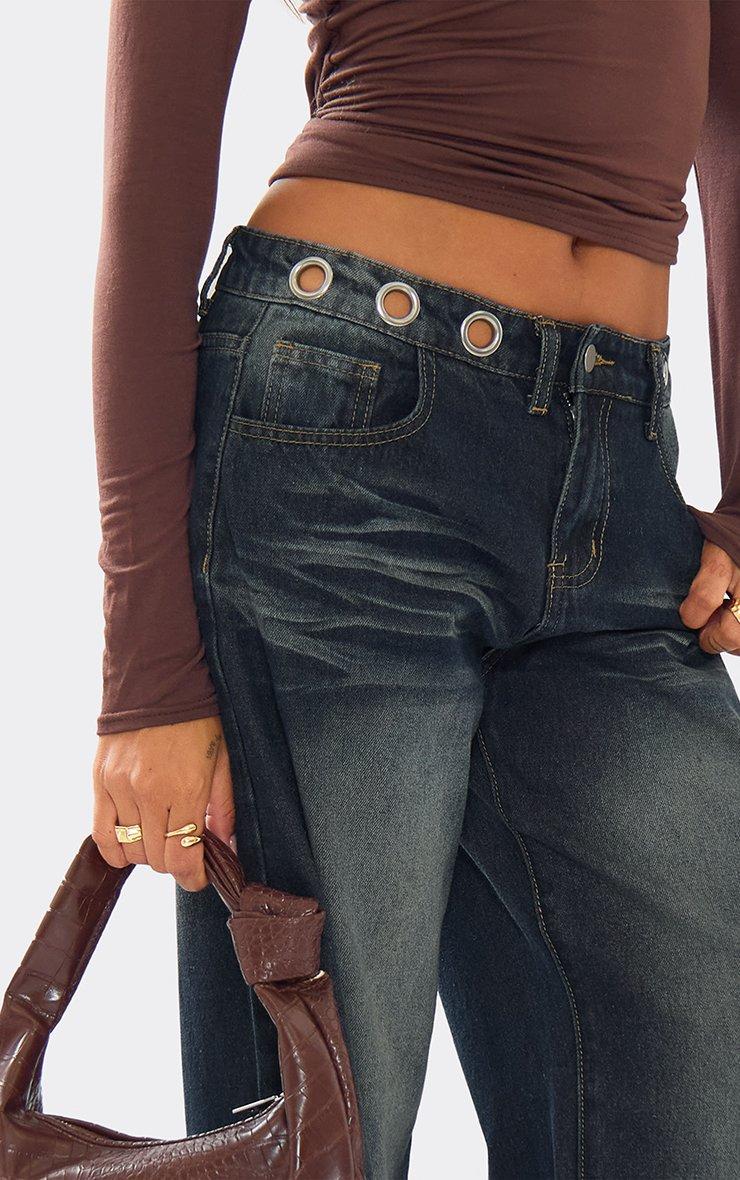 Low Rise Eyelet Detail Straight Leg Jeans In Vintage Wash Denim