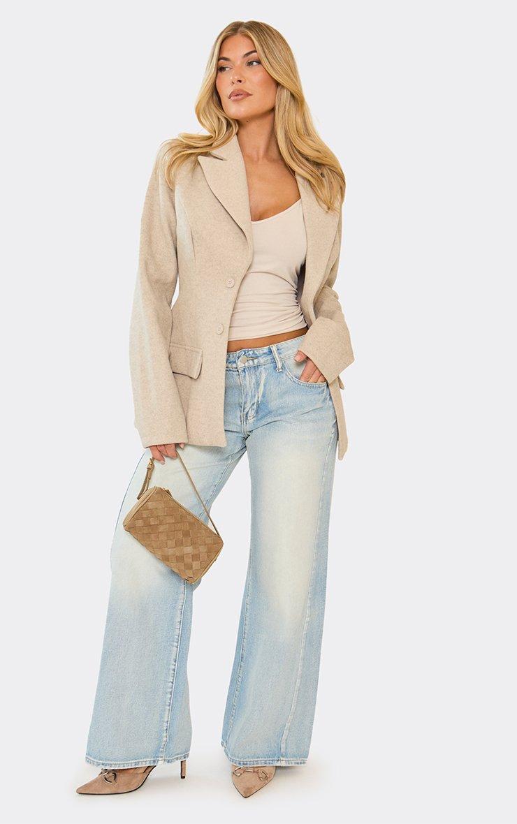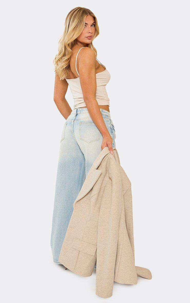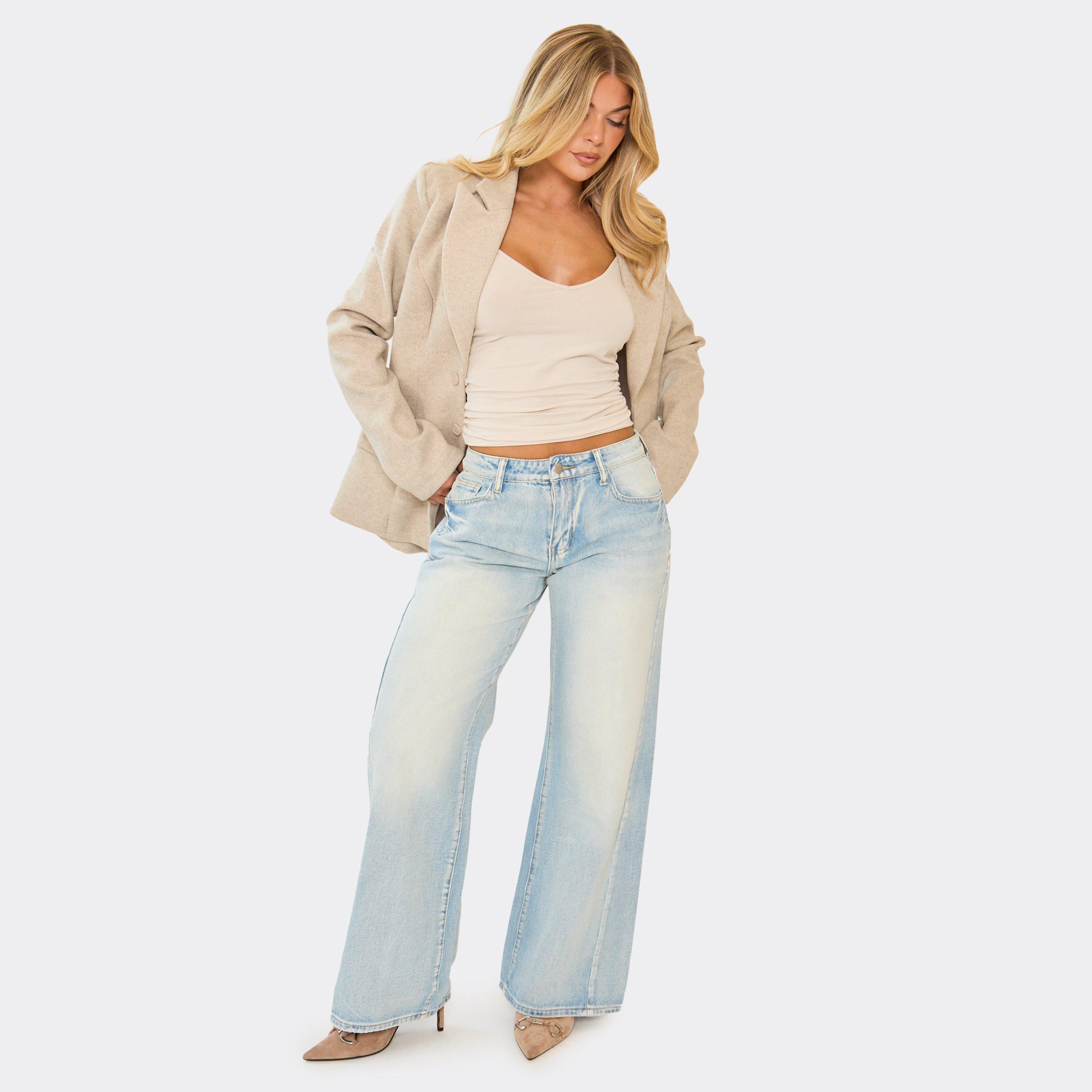 Low Rise Wide Leg Washed Detail Jeans In Blue Denim