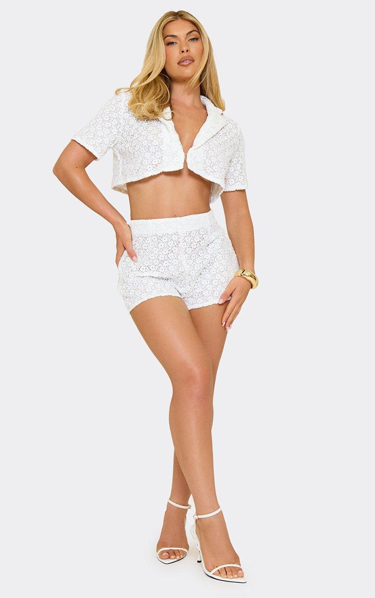 Low Rise All Over Frill Detail Booty Shorts In Cream Texture