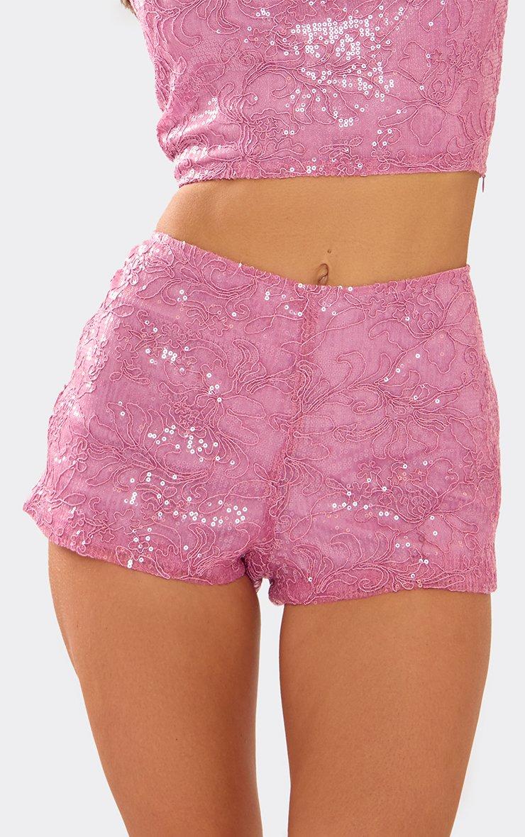 Mid Rise Hot Pants In Pink Multi Printed Sequin