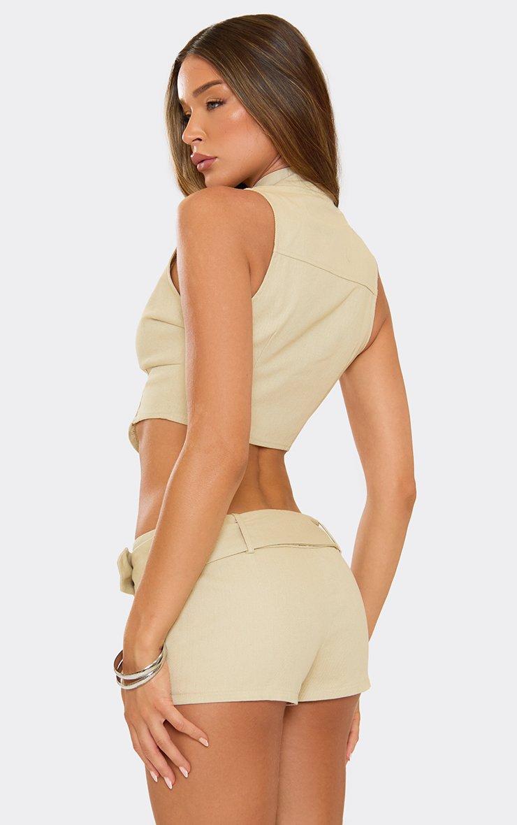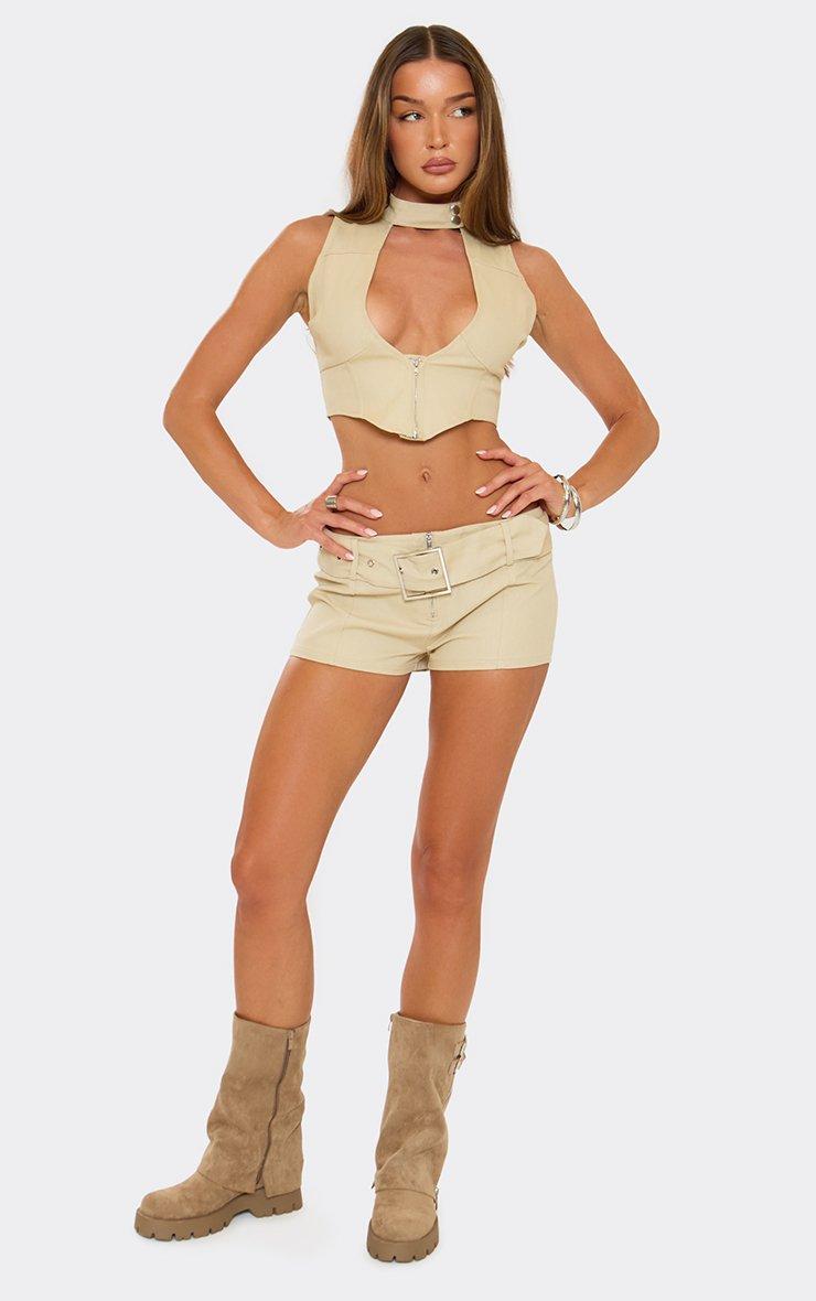Low Rise Zip Up Front Belted Hot Pants In Cream