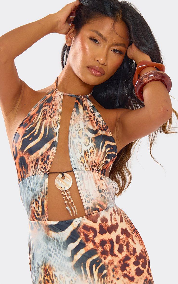 Strappy Hook And Eye Detail Mini Dress In Multi Animal Print