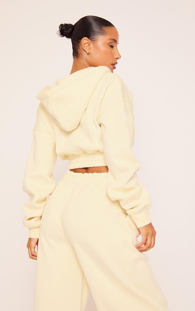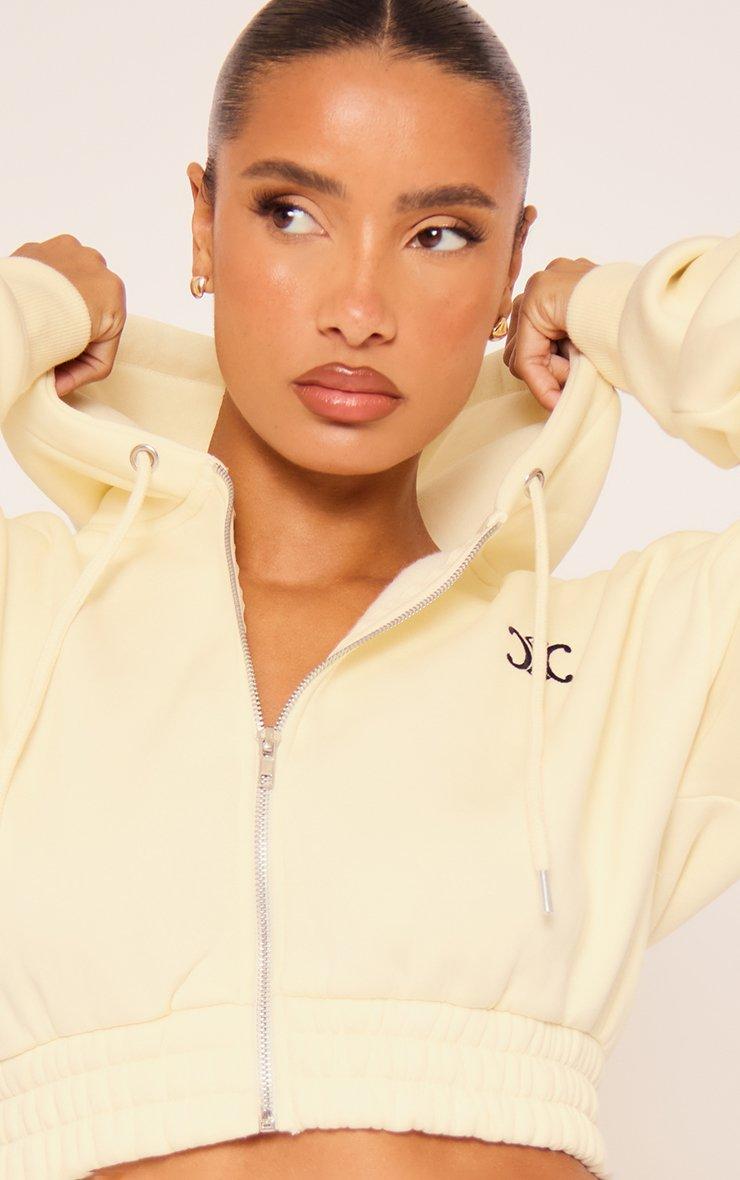 Zip Through Cropped Hoodie In Cream