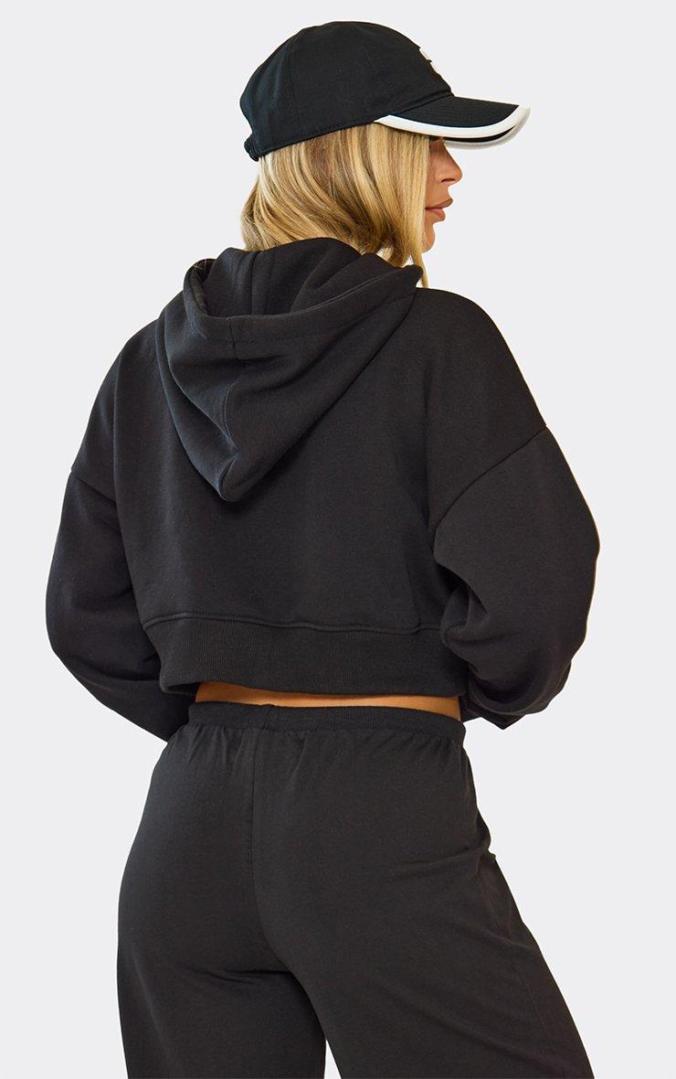 Long Sleeve Oversized Zip Detail Cropped Hoodie In Black