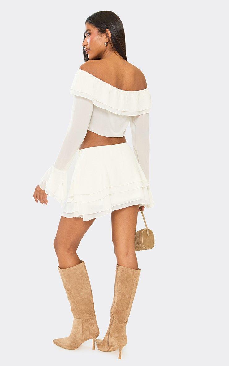 Mid Rise Asymmetric Frill Detail Mini Skirt In Cream