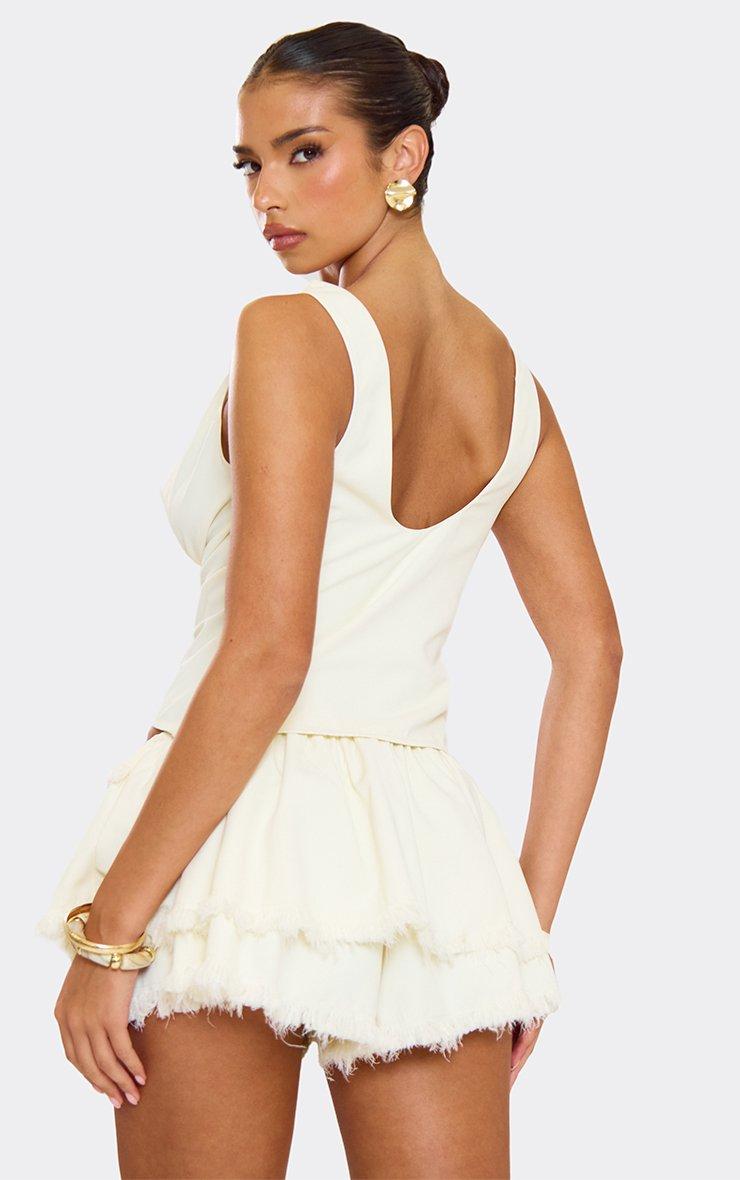 Square Neck Lace Up Front Detail Structured Corset Top In Cream