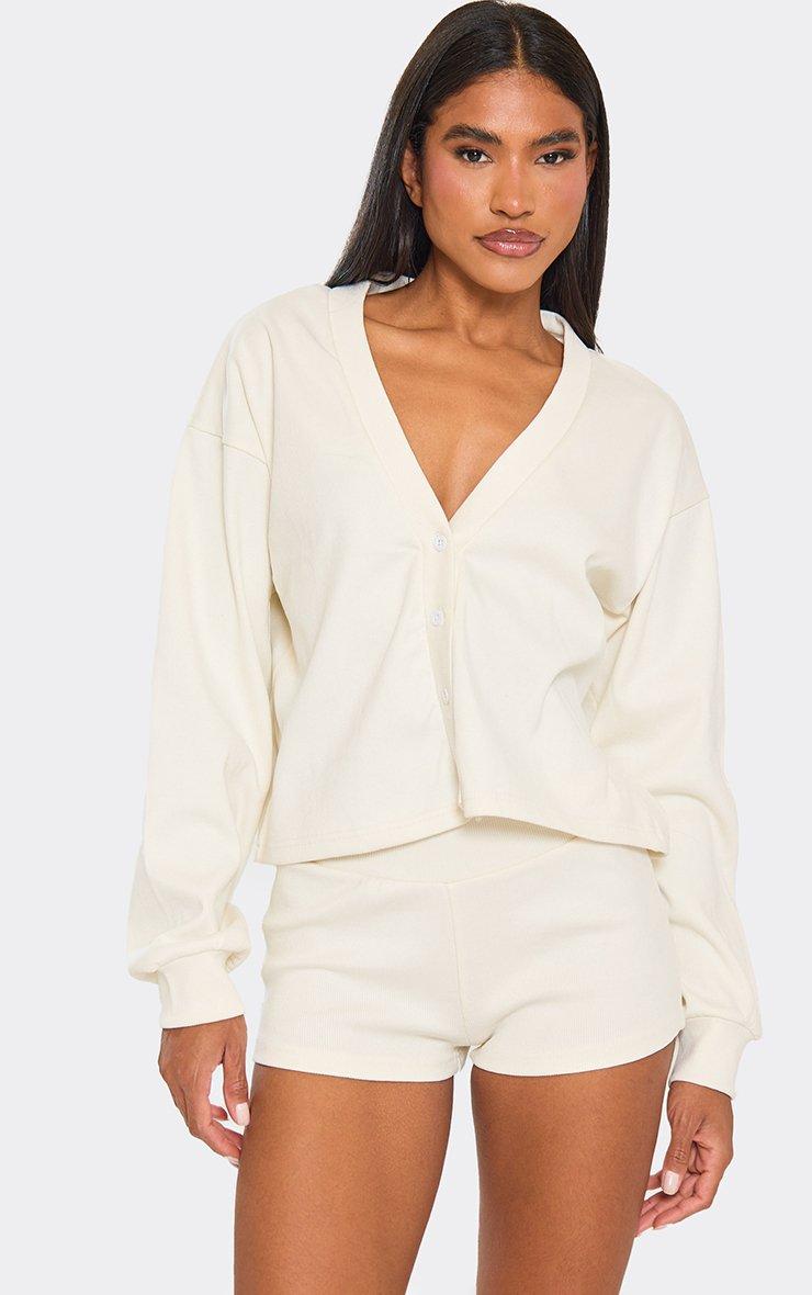 Mid Rise Zip Front Sweat Hot Pants In Cream