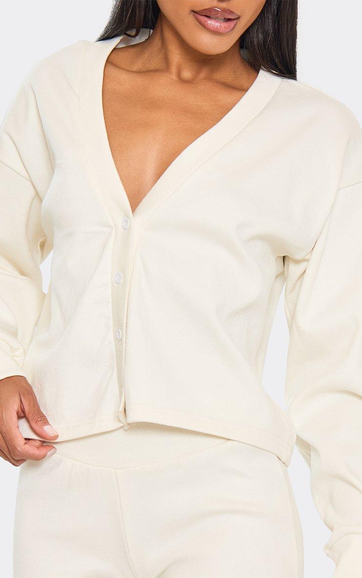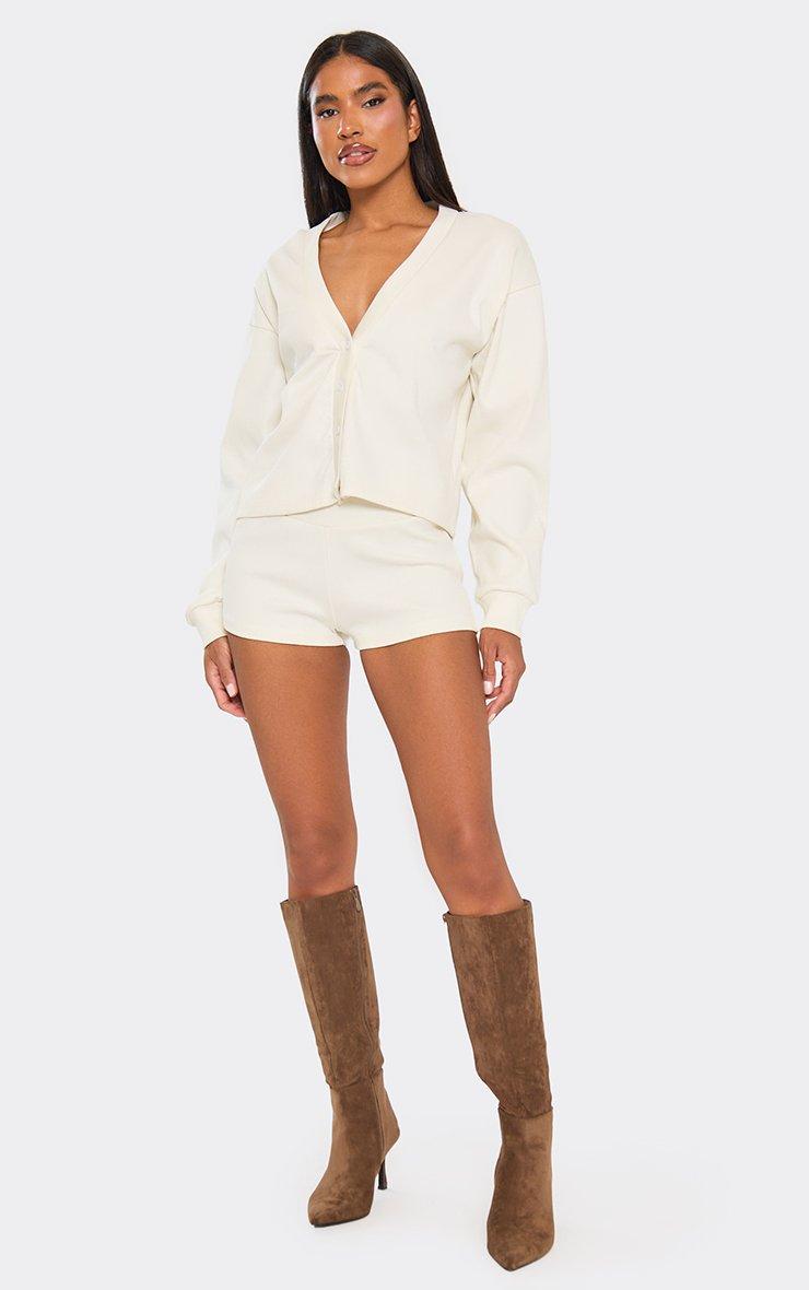 Long Sleeve Button Front Cropped Cardigan In Cream