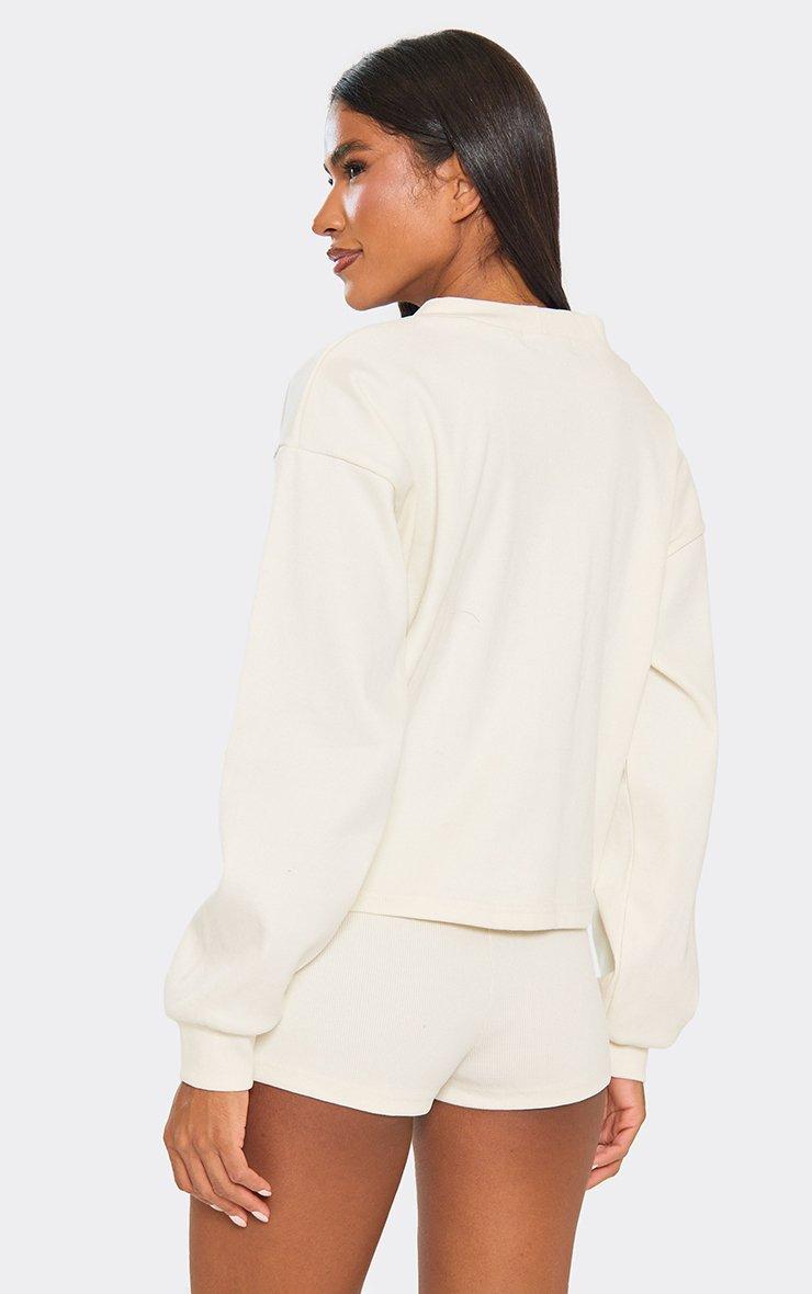 Long Sleeve Popper Detail Cinched Waist Sweatshirt In Chocolate Brown