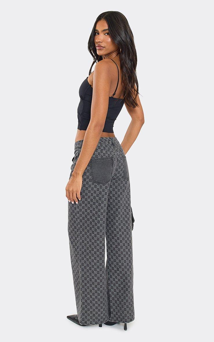 Low Rise Carpenter Seam Detail Wide Leg Jeans In Black Denim