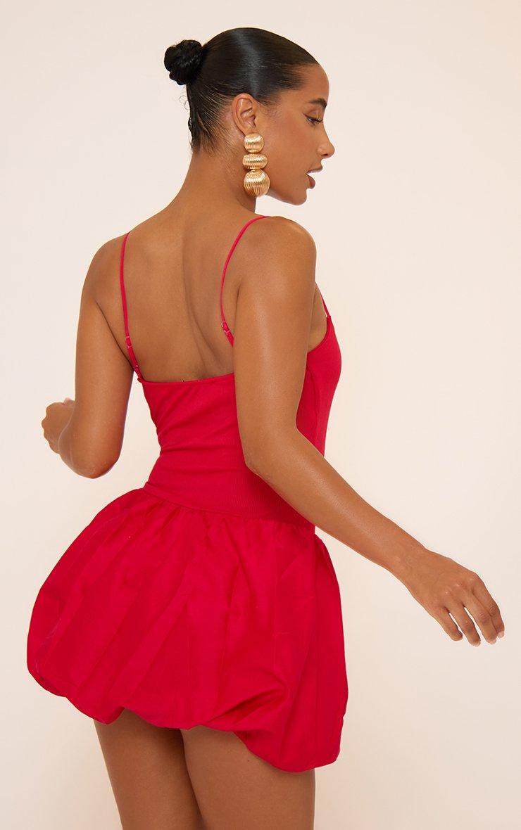45908 Lace Square Neckline Frill Hem Mini Dress In Red