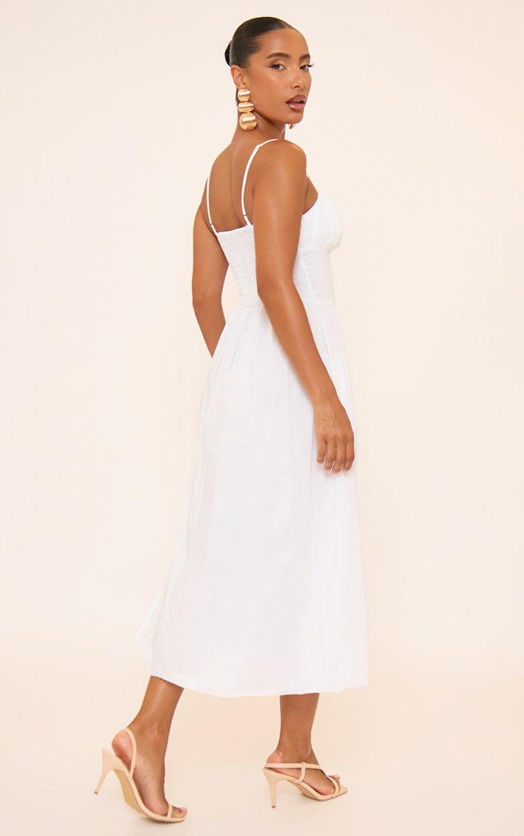 Long Sleeve Button Front Cinched Detail Shirt Dress In White