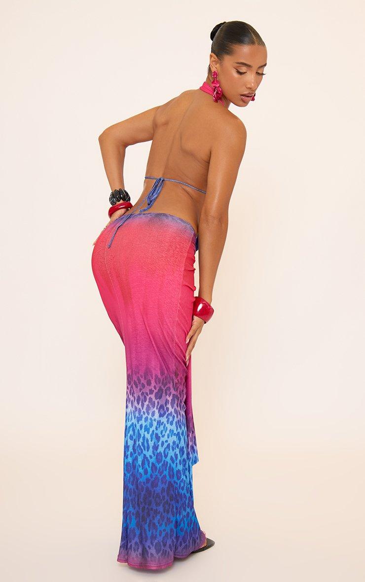 Mid Rise Drape Detail Maxi Skirt In Blue And Pink Leopard Print