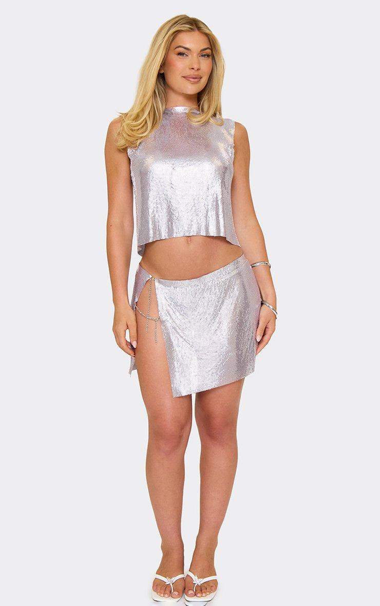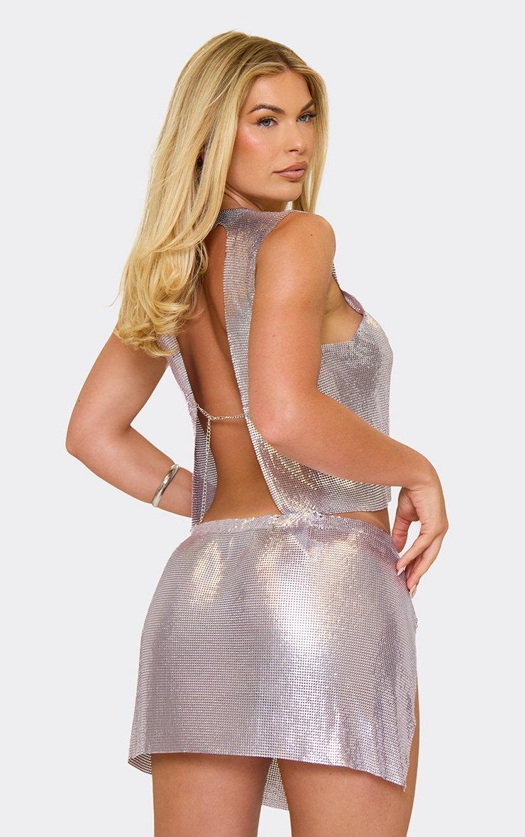 sleeveless open back top in lilac chainmail
