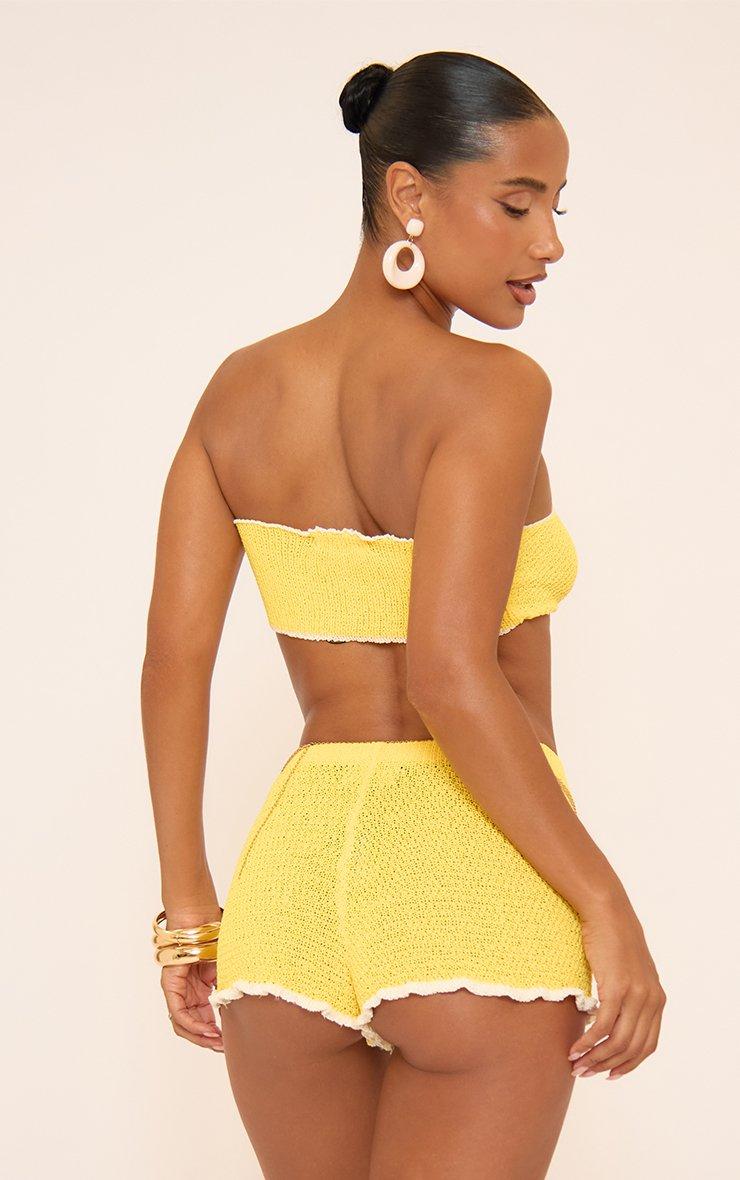 Bandeau Contrast Flower Trim Detail In Yellow Crochet Knit