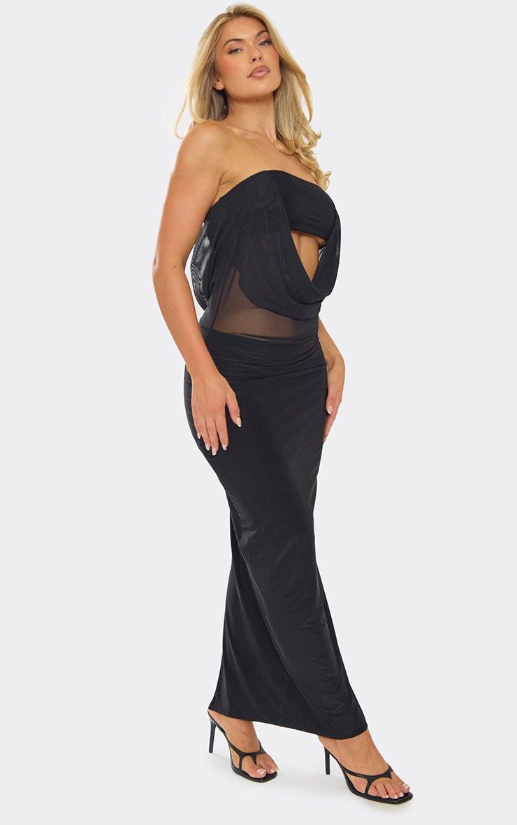 Bandeau Bralet Cowl Mesh Detail Maxi Dress In Black